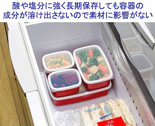 ホーロー製の角型ストッカー スタッキングが出来るシール蓋付き オーブン、ガス火、冷凍保存OK 食器洗い乾燥機、使用可