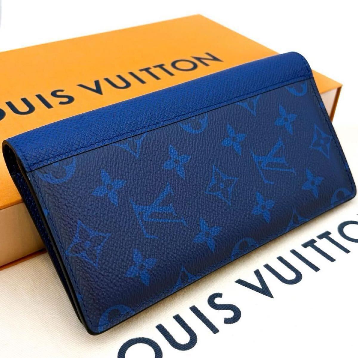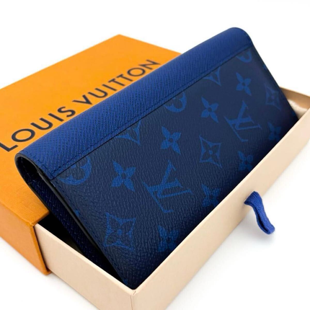 ルイヴィトン LOUIS VUITTON タイガラマ ポルトフォイユ ブラザ NM 新型 長財布 二つ折り財布 コバルト ブルー 青 お札入れ メンズ M30297