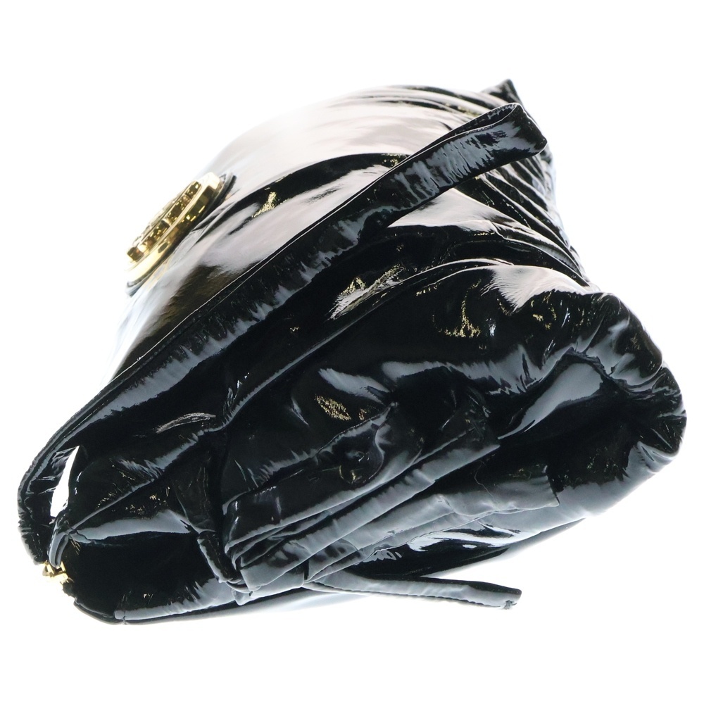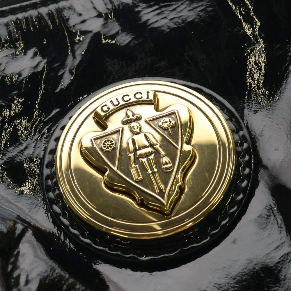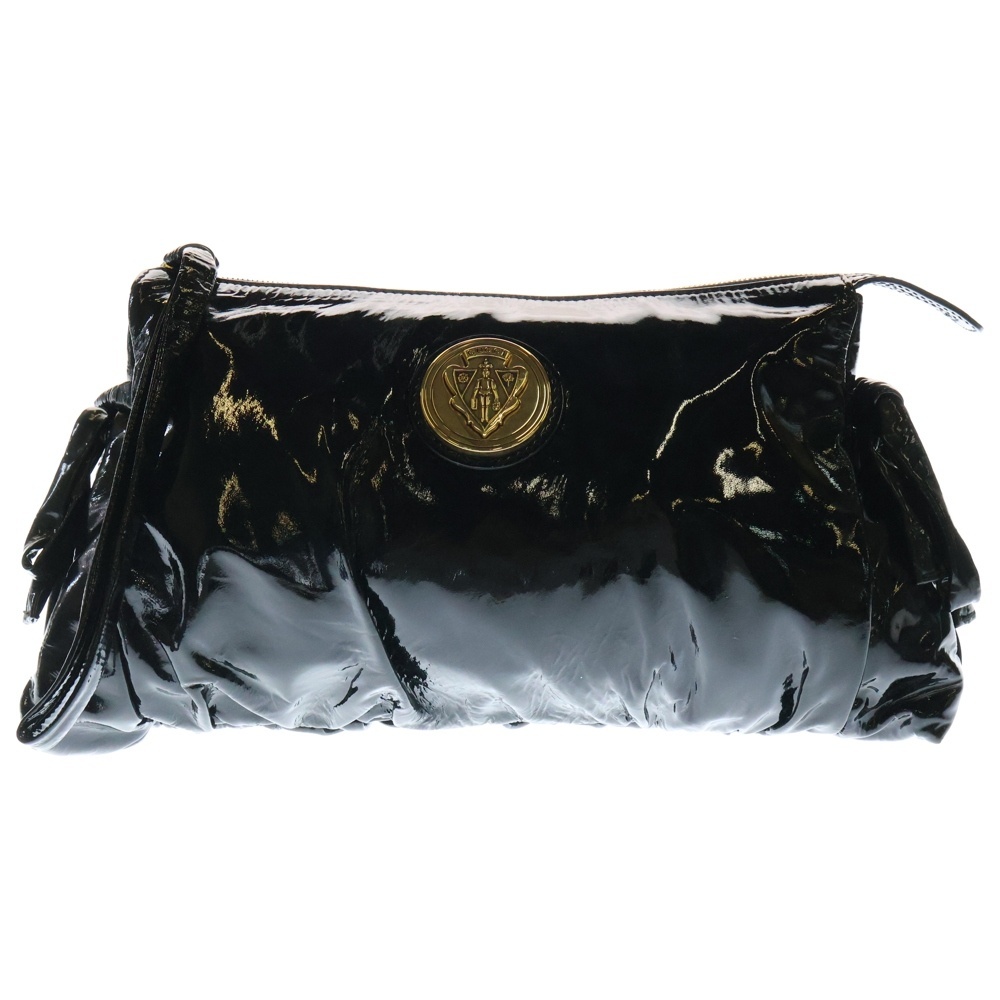 GUCCI グッチ ヒステリア エンブレム ロゴプレート パテントレザー クラッチ セカンド ハンドバッグ ゴールド金具 ブラック 197015