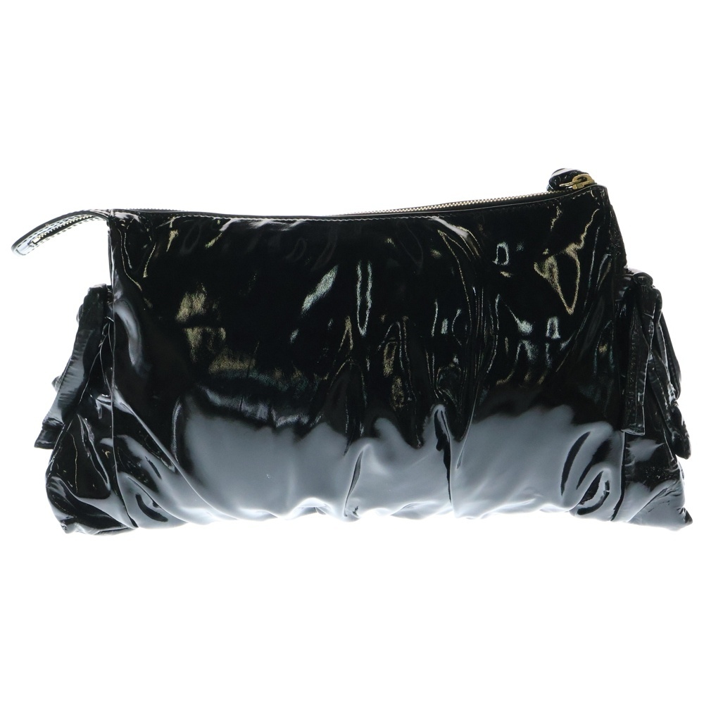 品名ヒステリア エンブレム ロゴプレート パテントレザー クラッチ セカンド ハンドバッグ ゴールド金具 ブラック 197015