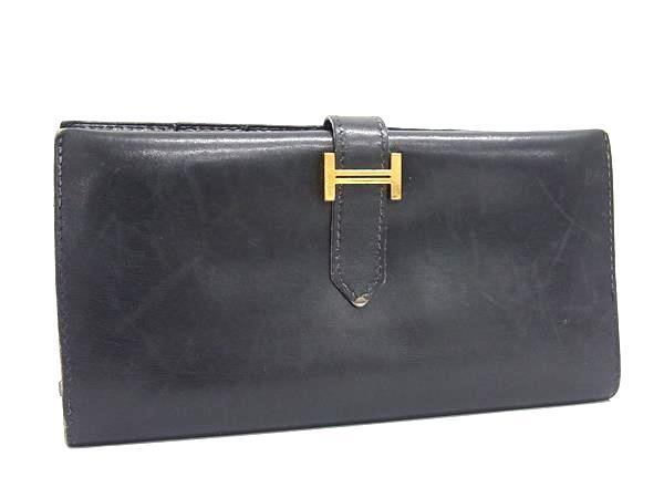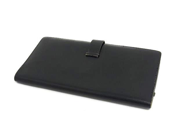 1円 HERMES エルメス ベアン クラシック ボックスカーフ ゴールド金具 二つ折り 長財布 ウォレット S刻印 小銭入れ ブラック系 FR3844
