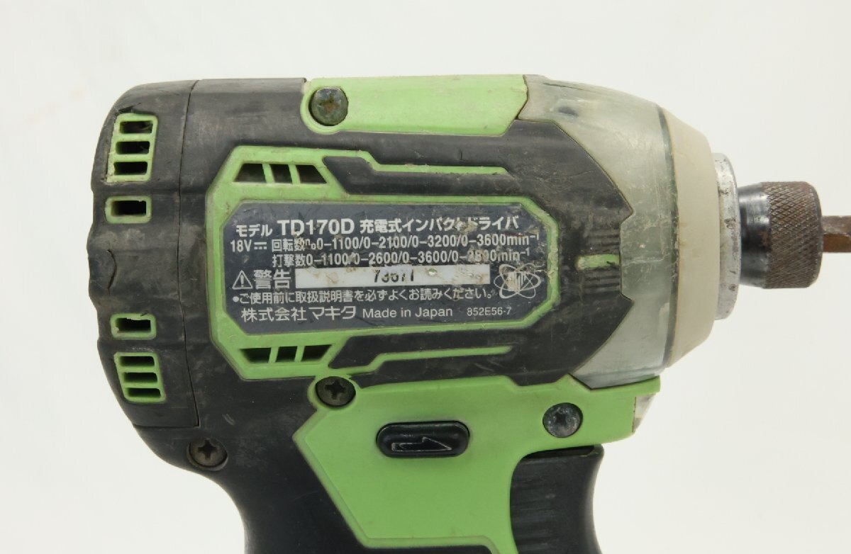 【品名】 マキタ makita 充電式インパクトドライバ TD170DRGXL 18V 充電器付き BL1860B 充電回数185回 ケース付き 【コンディション】 キズや汚れがございます。 サビや使用感がございます。 電源を入れ、動作に問題が無い事を確認しました。 商品は現状渡しになります。 【サイズ・仕様】 メーカー マキタ 型番 TD170DRGXL 全長(mm) 117 質量(kg)(バッテリー含) 1.4(BL1830B装着時) 詳細はメーカーでご確認ください。 付属品・パーツなどは写真にある物が全てです。 *商品のトラブル等で、返金手続きとなった場合、 お支払い頂いた商品代金以上の返金は致しませんので、 ご承知ください。 |