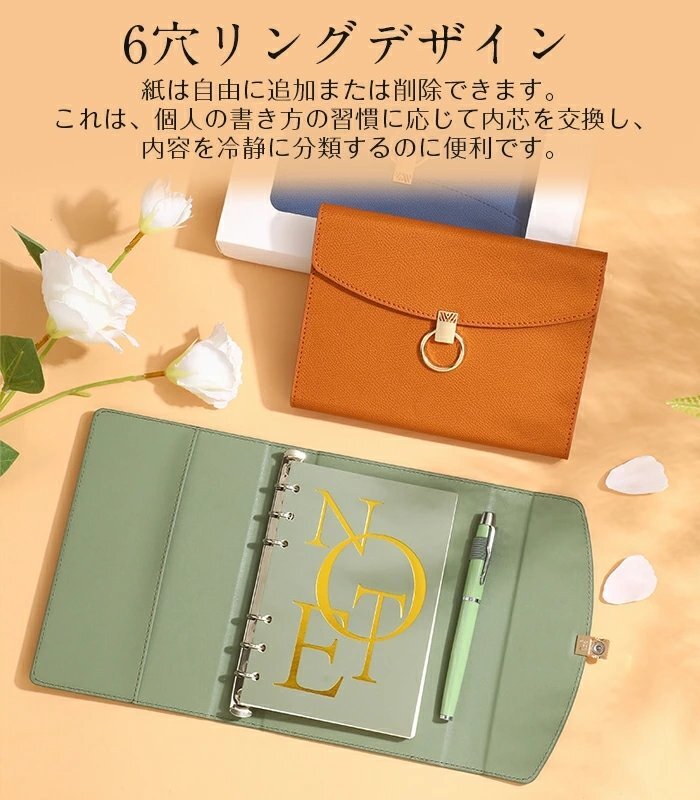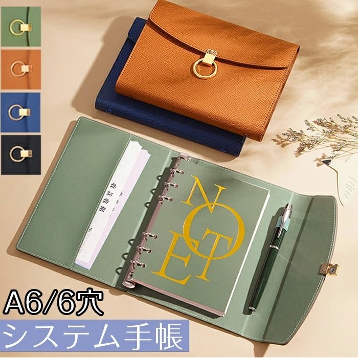 システム手帳 A6 ルーズリーフ 6穴 リング PUレザー カード収納 スオフィス用品 ビジネス手帳 スケジュール帳 卒業記念品 ☆4色選択/1点