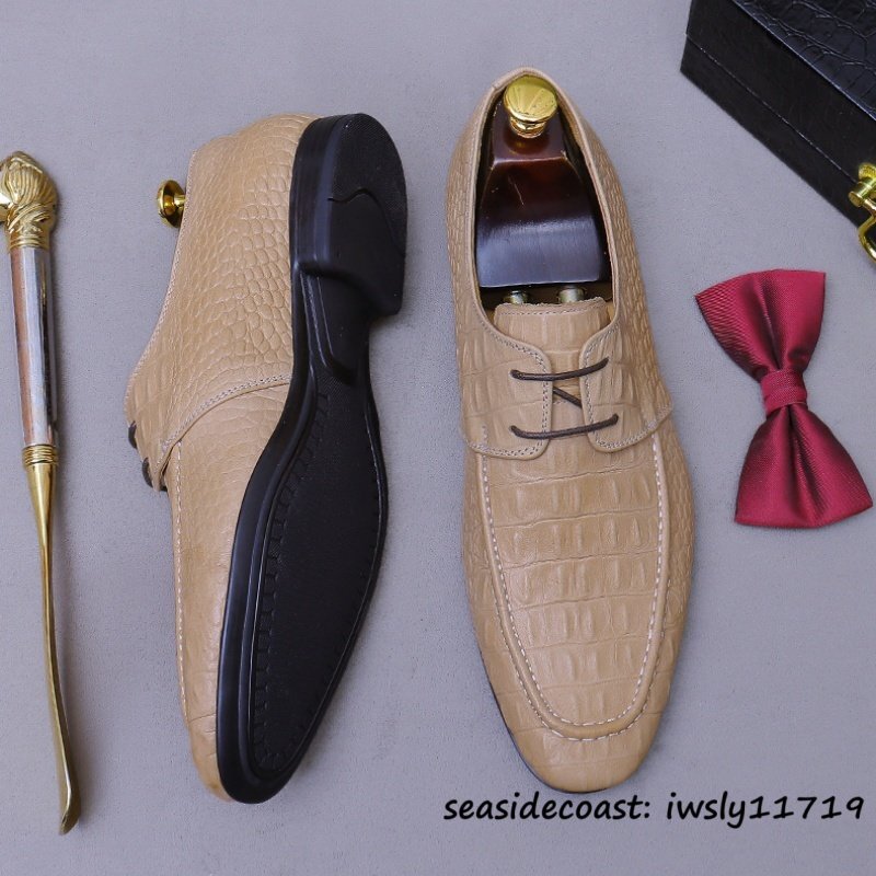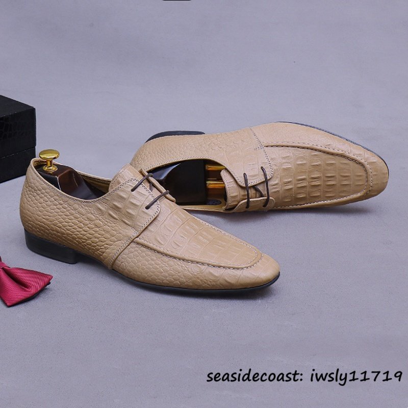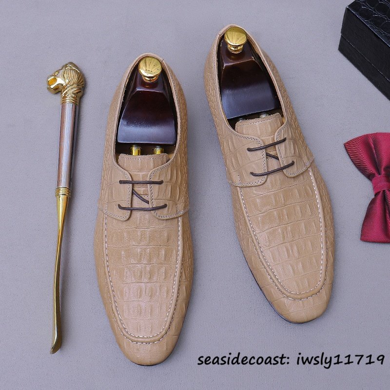 最高級◆超希少 メンズ ビジネスシューズ 手塗仕上げ 職人手作り 本革レザーシューズ 鰐柄 天然牛革 紳士靴 革靴 結婚式 フォーマル 26.0cm