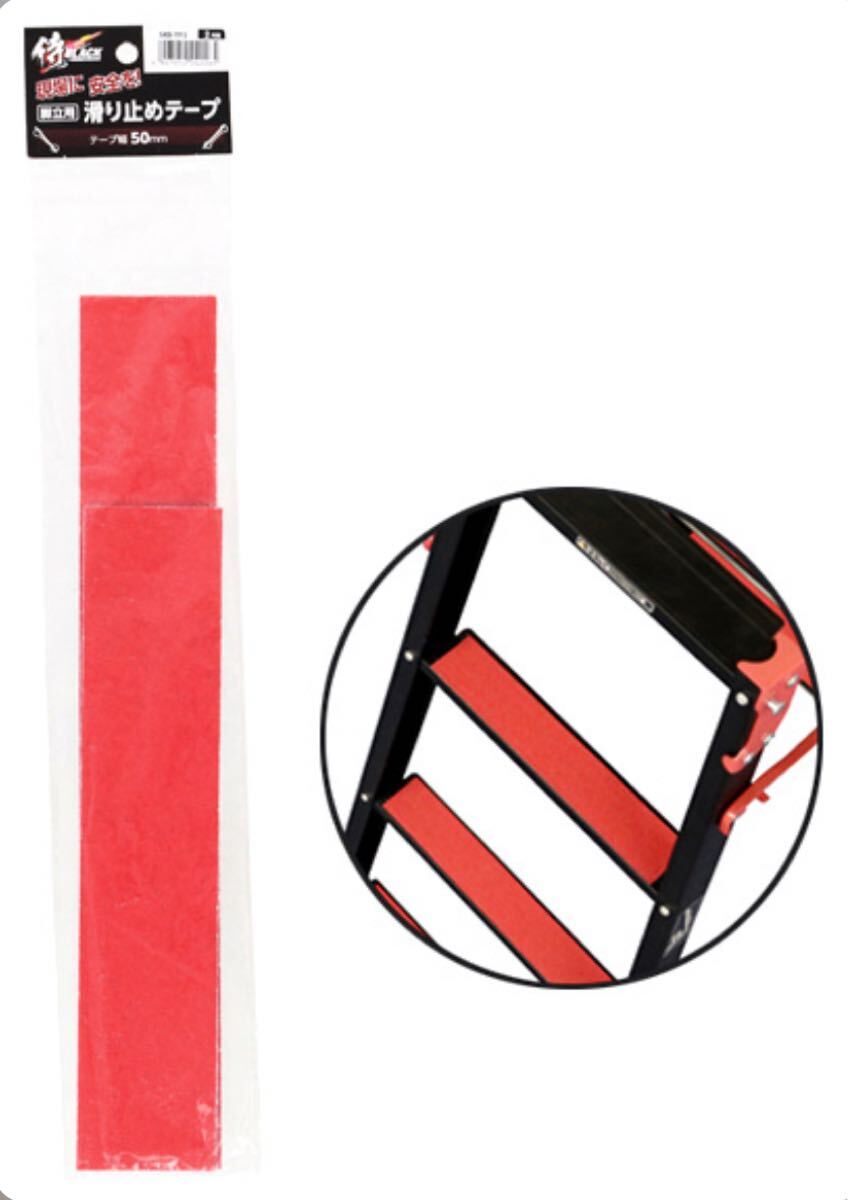 滑り止め効果のある赤いテープ、幅50mm 2枚×5段分、安全対策に最適。