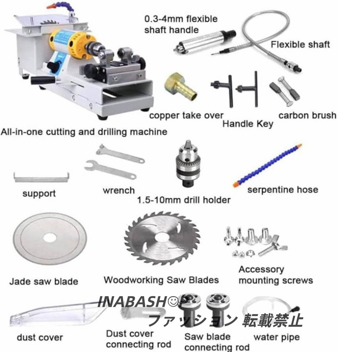 【パッケージリスト】1*切断およびボール盤、1*0.3-4mmフレキシブルシャフトハンドル、1*フレキシブルシャフト、1*銅ノズル、2*チャック/ハンドルキー、2*カーボンブラシ、1*ブラケット、2*レンチ、 1*1.5-10mm ドリルビットクランプ、1* スネークウォーターパイプ、1* 翡翠鋸刃、1* 木工鋸刃、8* 付属品取り付けネジ、1* ダストカバー、1* ダストカバーコネクティングロッド、2* 鋸刃ロッド、1 * 水道管。