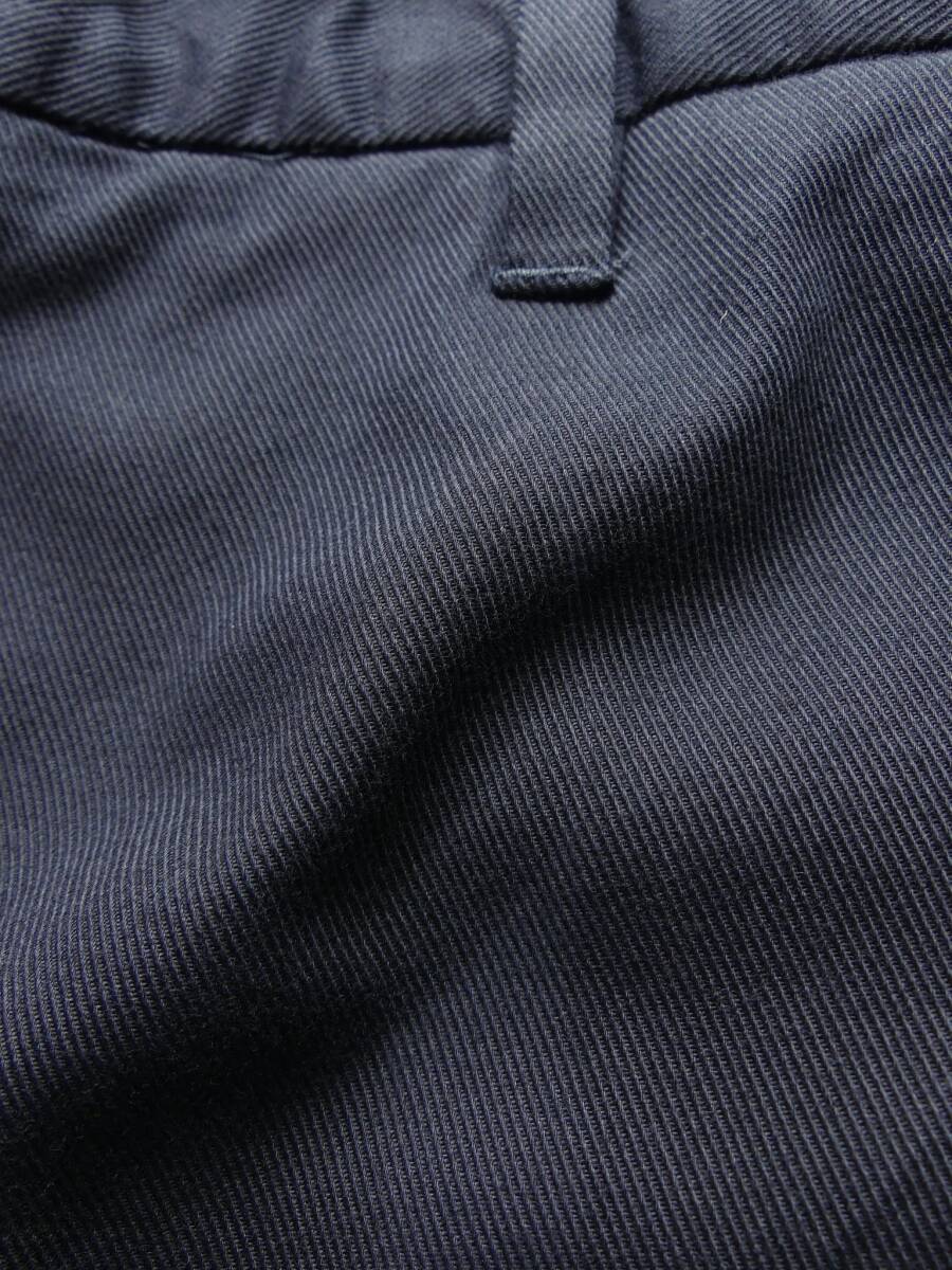 年齢を問わずみなさまにご案内できるお品です。色もスタイルも定番タイプで、今の時代ならジャケパン用パンツとしても使えて休日用としても活躍する万能物です。しっかりした織りのストレッチツイル生地で仕立てた濃紺スラックス。フツーのお品と言えば普通ですが、価格に見合った高品質で長く愛用できますので、いつでも使える1本としてこの機会に所有されておくと結構便利で、うっかりヘビロテになるお品です。スタイル的には適度に無駄なダボ付きを取り除いて穏やかなテーパードをかけたナチュラルスリムですので、すっきりきれいなシルエットになります。丈夫な高密度織りツイルを中厚手より少し厚手に織り込んだ生地で、おおむね通年物になりますが真夏の着用には向かない感じです。高密度ツイル織りはデニム地よりも丈夫で、ラフにカジュアルに普段履きしてもへこたれることがありません。今回の生地はストレッチ性がありますので、膝やお尻がつっぱりませんので、つっぱらない分だけ生地への負担も軽減されて、したがってより一層長持ちします。ストレッチはもちろん履き心地の良さにも影響します。気を使わないでラフに履くパンツとなると、どうしてもジーンズばかり手に取ってしまうお客様も多いと思います。そんな方にはこちらのパンツは特におすすめです。ナチュラルスリムスタイルの濃紺パンツは見た目にきれいに見えて、いつも履いているジーンズをこちらに履き替えるだけで全然雰囲気が変わります。きれいな感じで履きたい場合は裾上げ加工をお勧めしますが、ジーンズ同様にロールアップで履いていただいても大丈夫。裾上げ無しなら受け取ってすぐに履けます。今回は皆様がお求めやすいように、気楽に履けるように出品価格を頑張りましたので、ぜひお手に取って便利に使っていただければと思います。間違いのないお買い物と思います。