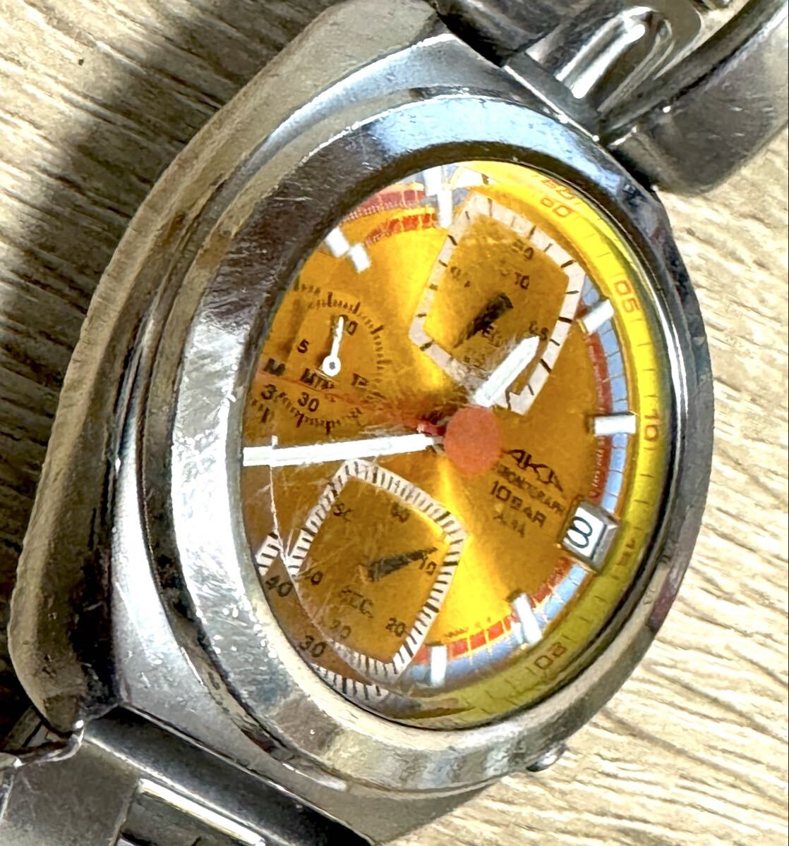 | 【希少 電池交換済 稼動】 SEIKO セイコー ALBA AKA オレンジ文字盤 アルバ アカ クロノグラフ V657-6030 クォーツ 純正ブレス デイト | |