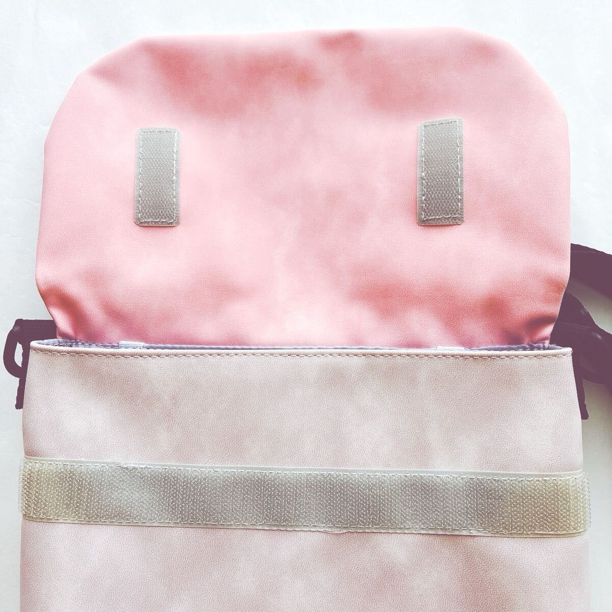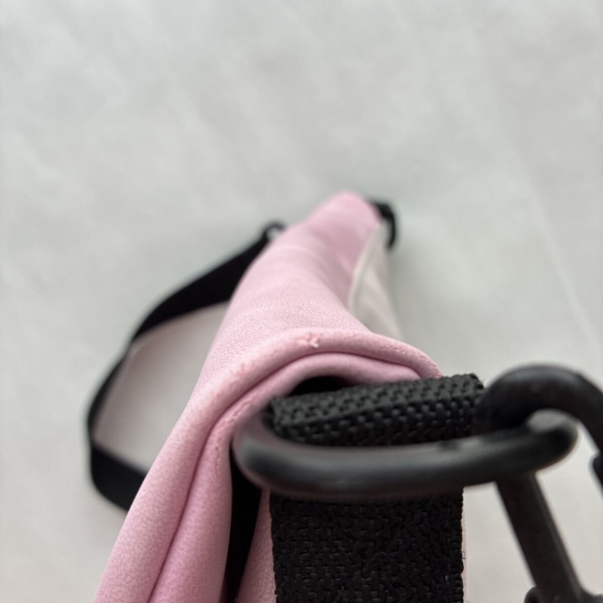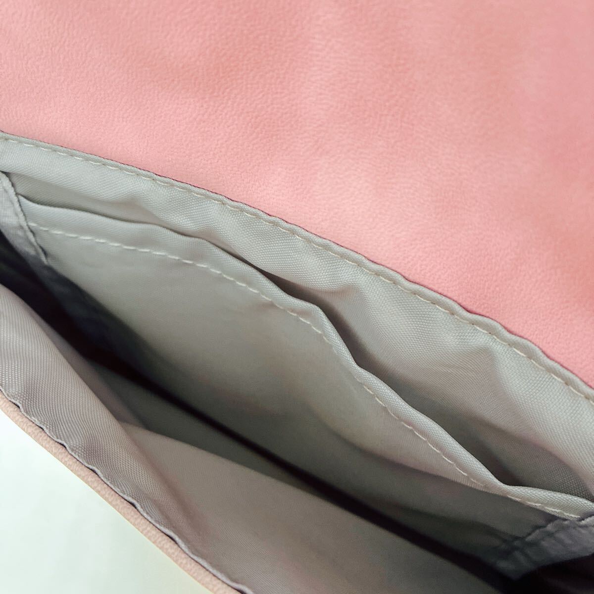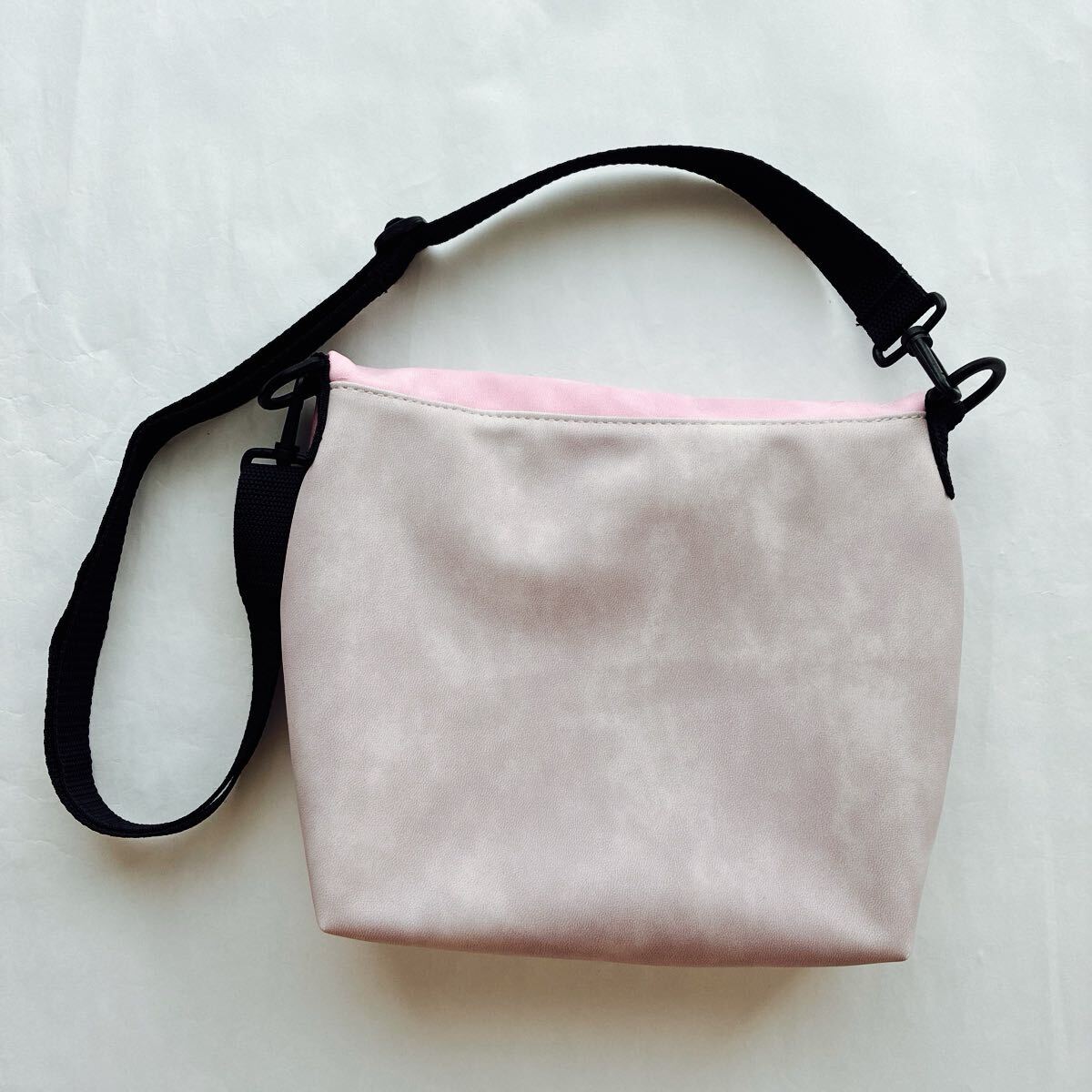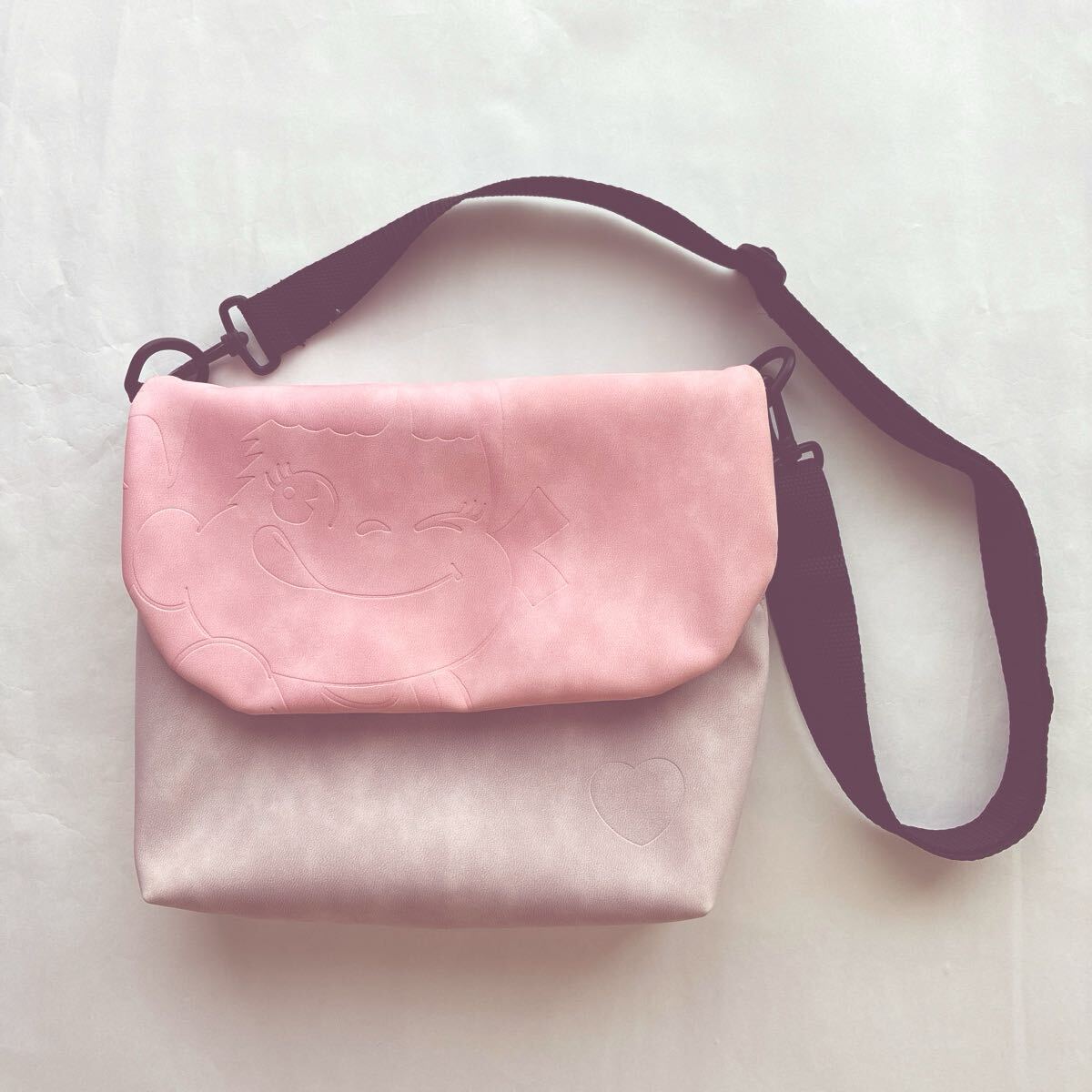 不二家 ペコちゃんのサコッシュバッグ、ピンク&グレー。