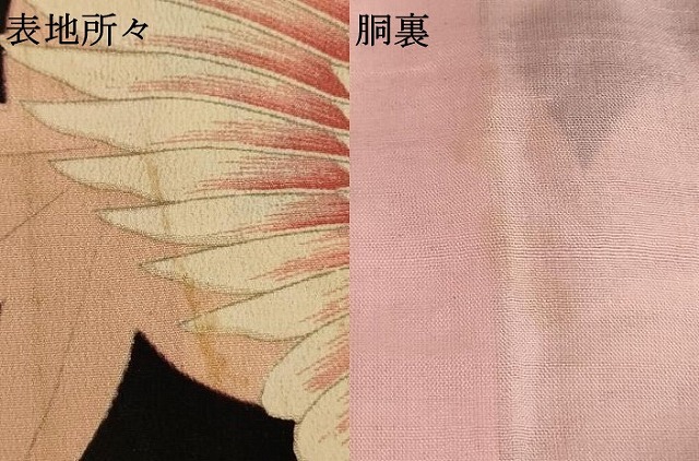 | 着物【正絹】の状態は接写画像のように表地所々にシミ、胴裏に薄い汚れがございます。 大変上質な逸品になりますので ぜひお手入れをされてお召しになられてはいかがでしょうか。 お安く出品致しますので、是非この機会にいかがでしょうか?