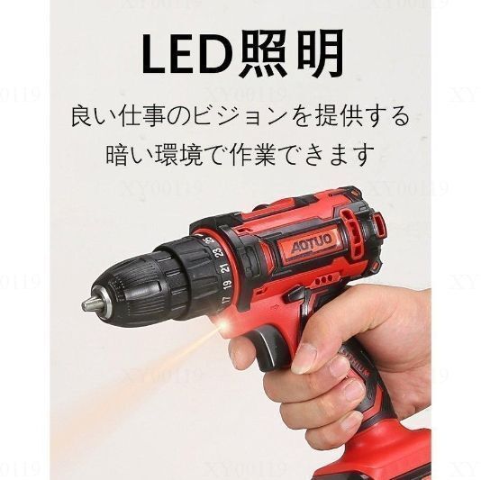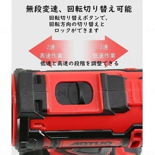 【正反転切替】:ワンタッチで正反転。正の反転レバーの位置を調整します、回転方向を切り替えることができます。ねじを締めることもできるし、ネジを緩めることもできます。使用しない場合は、正の反転レバーを真ん中に置くだけで、トリガーをしっかりとロックし、トリガーやLEDランプが動作しないようにして、不意の誤動作を防止します。