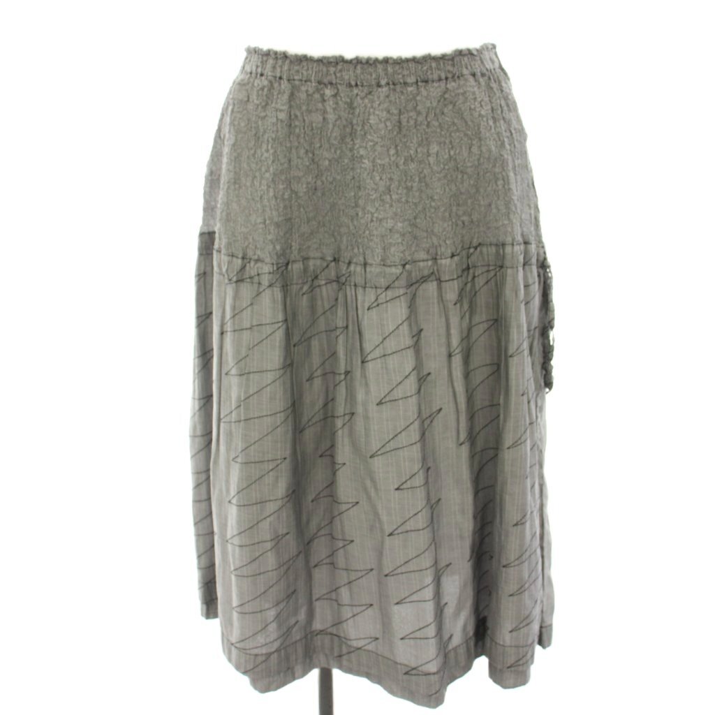 ミーイッセイミヤケ me ISSEY MIYAKE フレアスカート ワッシャー加工 ひざ丈 刺繍 グレー MI92FG601 /HN レディース