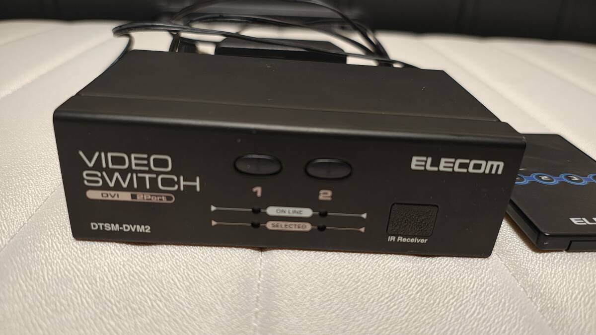 ELECOM製のDVI対応ビデオ切替器です。2台のPCや機器を接続し、ボタン一つでモニターの表示を切り替えることができます。