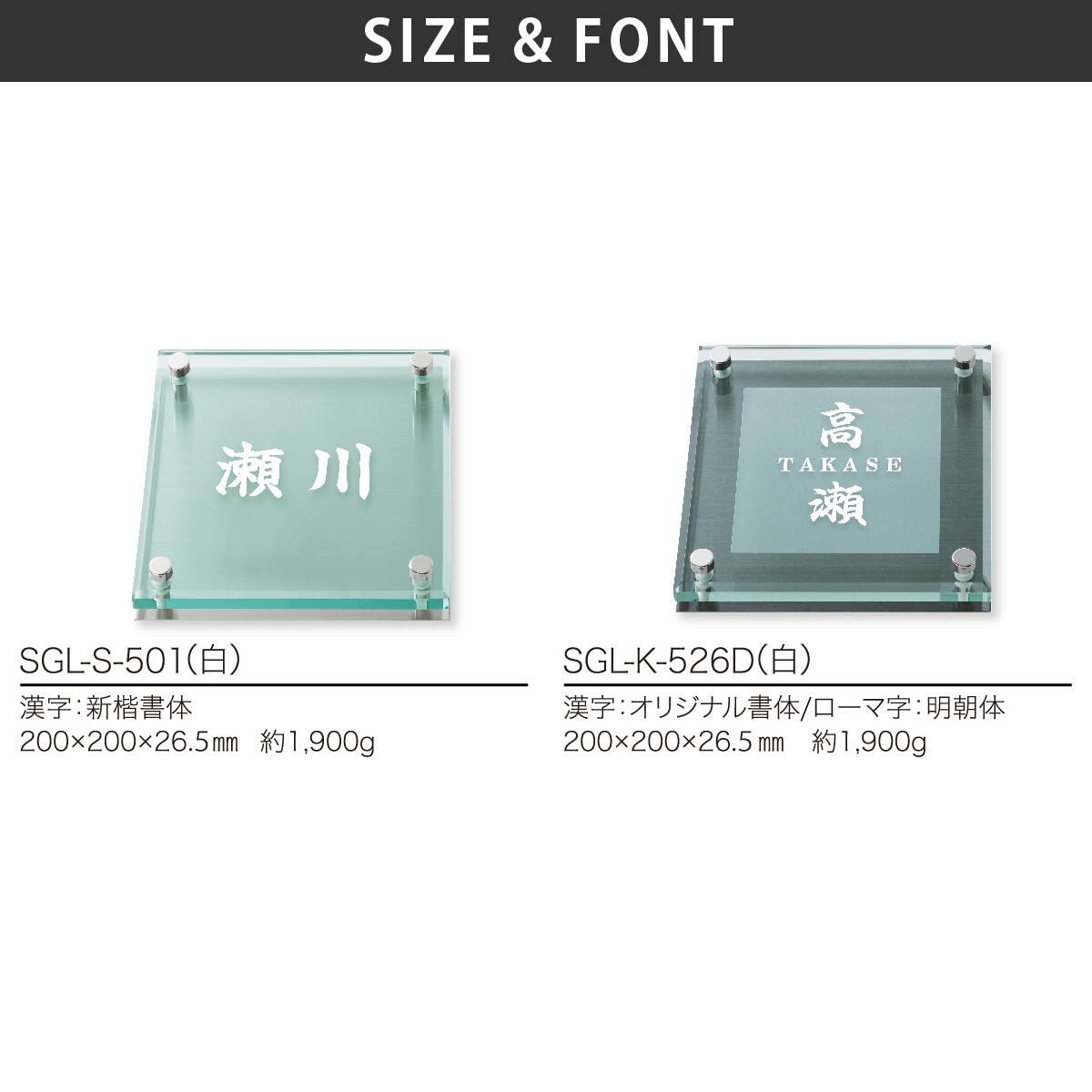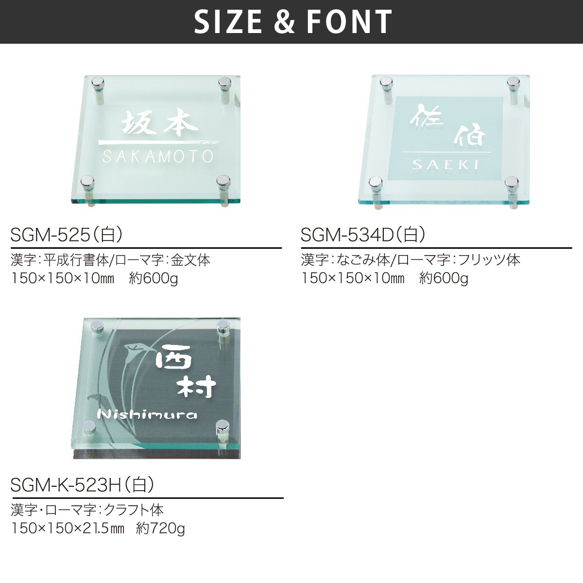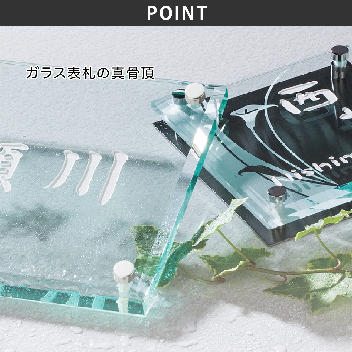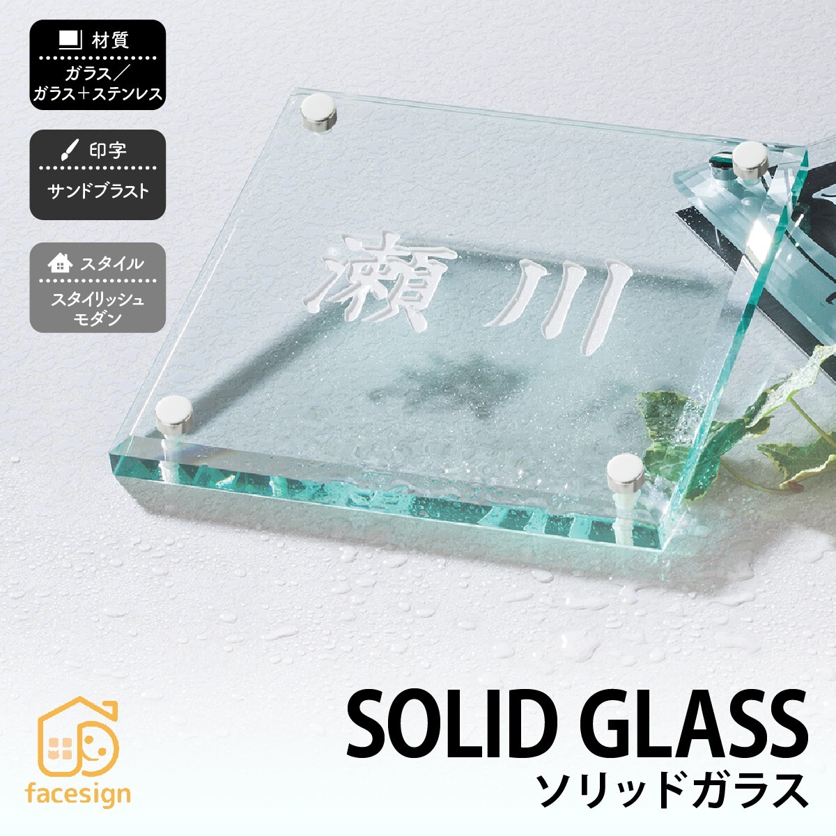 商品詳細 | 重厚なソリッドガラスを使った涼しげなガラス表札 |