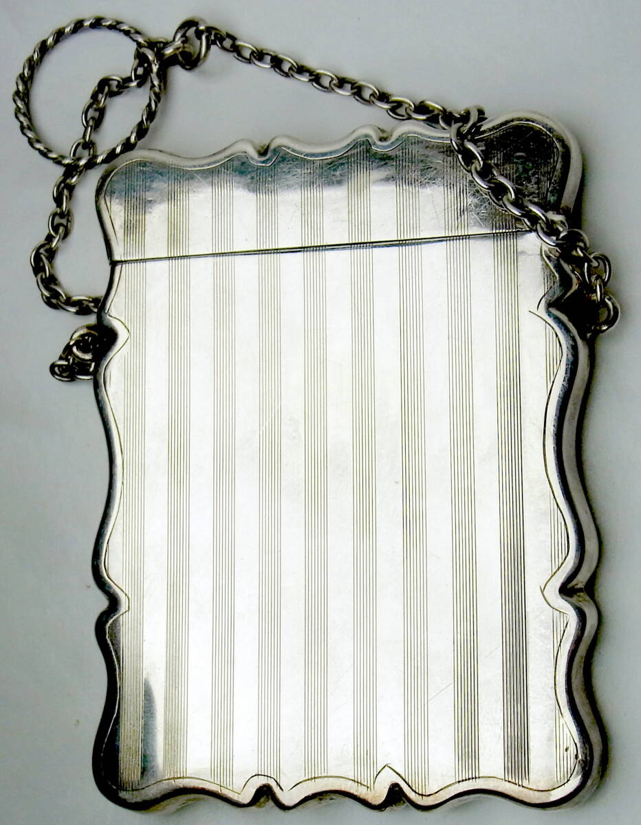 美 イギリスアンティーク 純銀スターリングシルバー カードケース チェーン付き G Loveridge & Co バーミンガム 1912年 英国骨董