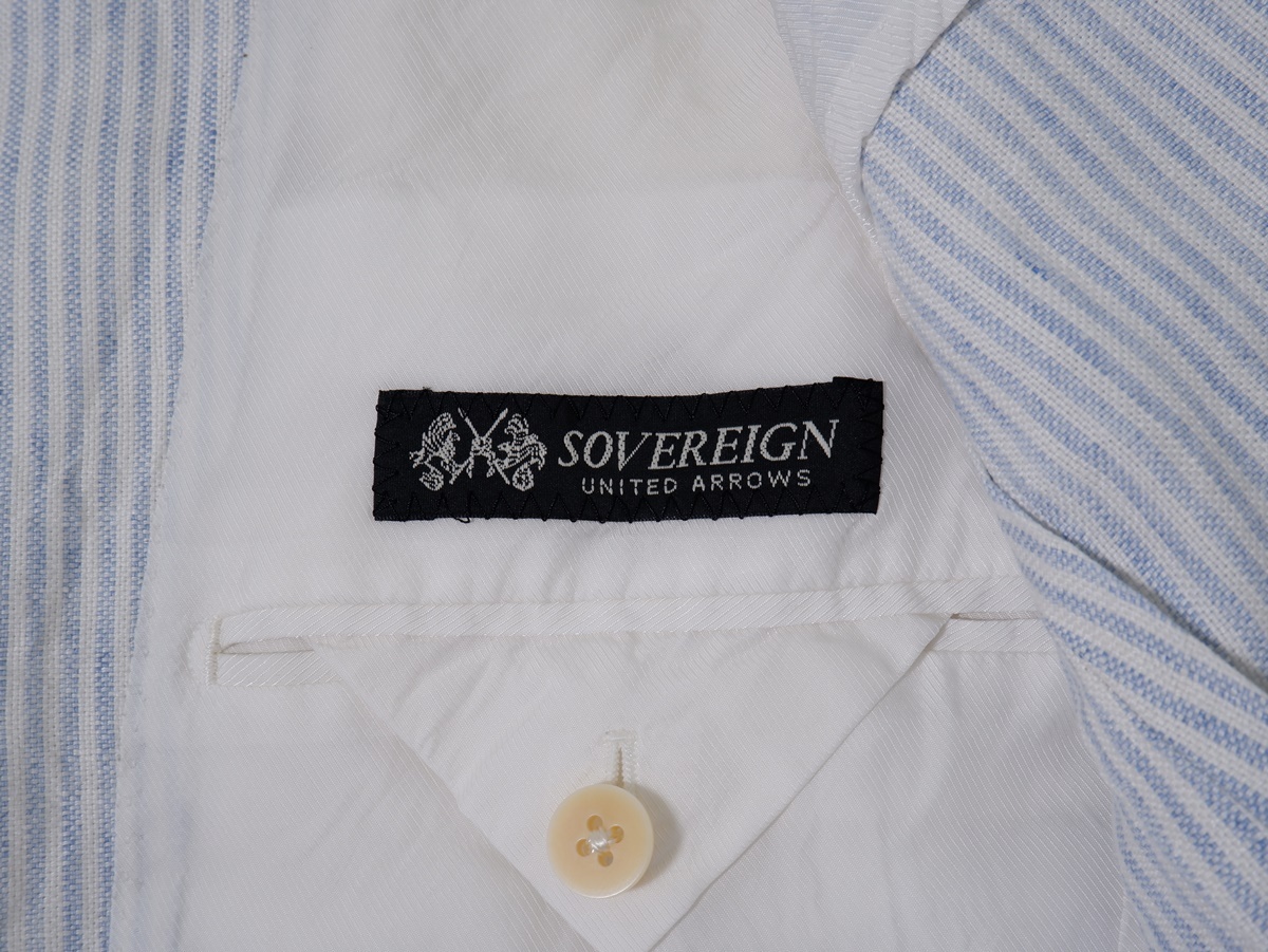 【素材感】ややハリのあるリネン地 【透け感】なし 【裏地】あり(背抜き) 【ストレッチ】なし 【開閉デザイン】ボタン 【付属品(取り外し可)】なし 【商品情報】ユナイテッドアローズの最高峰レーベルSOVEREIGN。清涼感のあるリネン生地で仕立てられたストライプ柄のジャケット。 |
