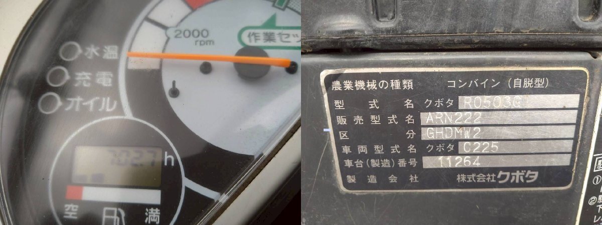 鳥取発【送料別】クボタ コンバイン ARN222 701 時間 22馬力 機番:11264 島根 岡山 広島 兵庫