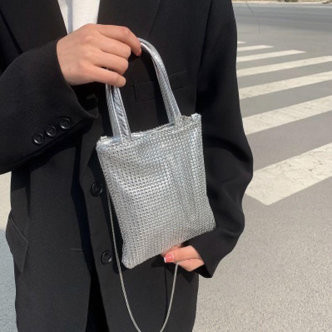 コンパクトで持ちやすいサイズ感のラインストーン付きバッグ♪