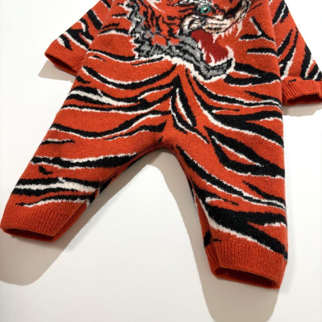 【現行☆美品】GUCCI ロンパース カバーオール ニット 刺繍ロゴ タイガー