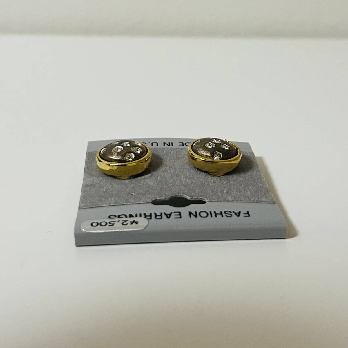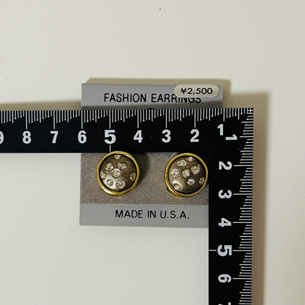 283 アンティーク ビンテージ アクセサリー イヤリング 両耳揃い 台紙付き 未使用保管品!ゴールドカラー ラインストーン 丸 かわいい 海外製