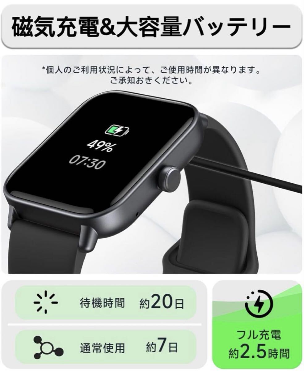 機能:Alexa音声アシスタント対応、Bluetooth通話機能、心拍数、睡眠健康管理、歩数計、カロリー計算など。