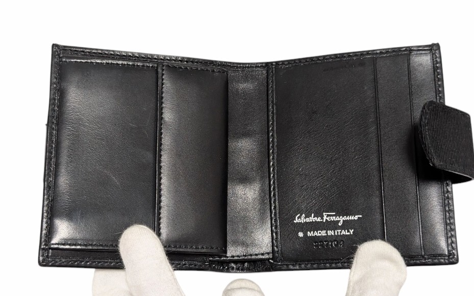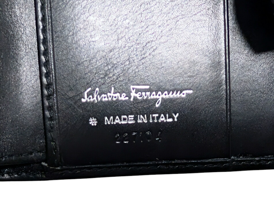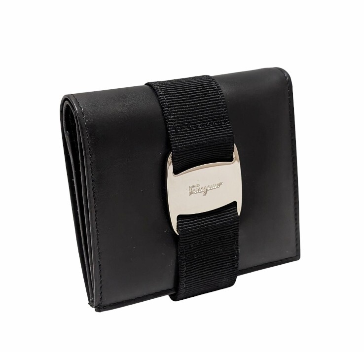 未使用 フェラガモ ヴァラ 財布 二つ折り コンパクトウォレット ヴァラ金具 マット ブラック 黒 Feraggamo 【中古】