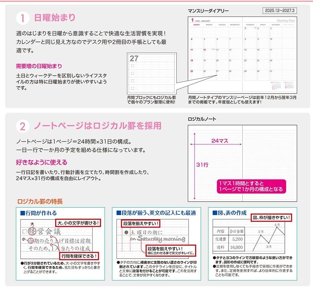 【2026年度版 手帳】 ナカバヤシ ロジカルダイアリー2026月間ノートタイプP/B6ピーナツ1 NS-B602-26PA1