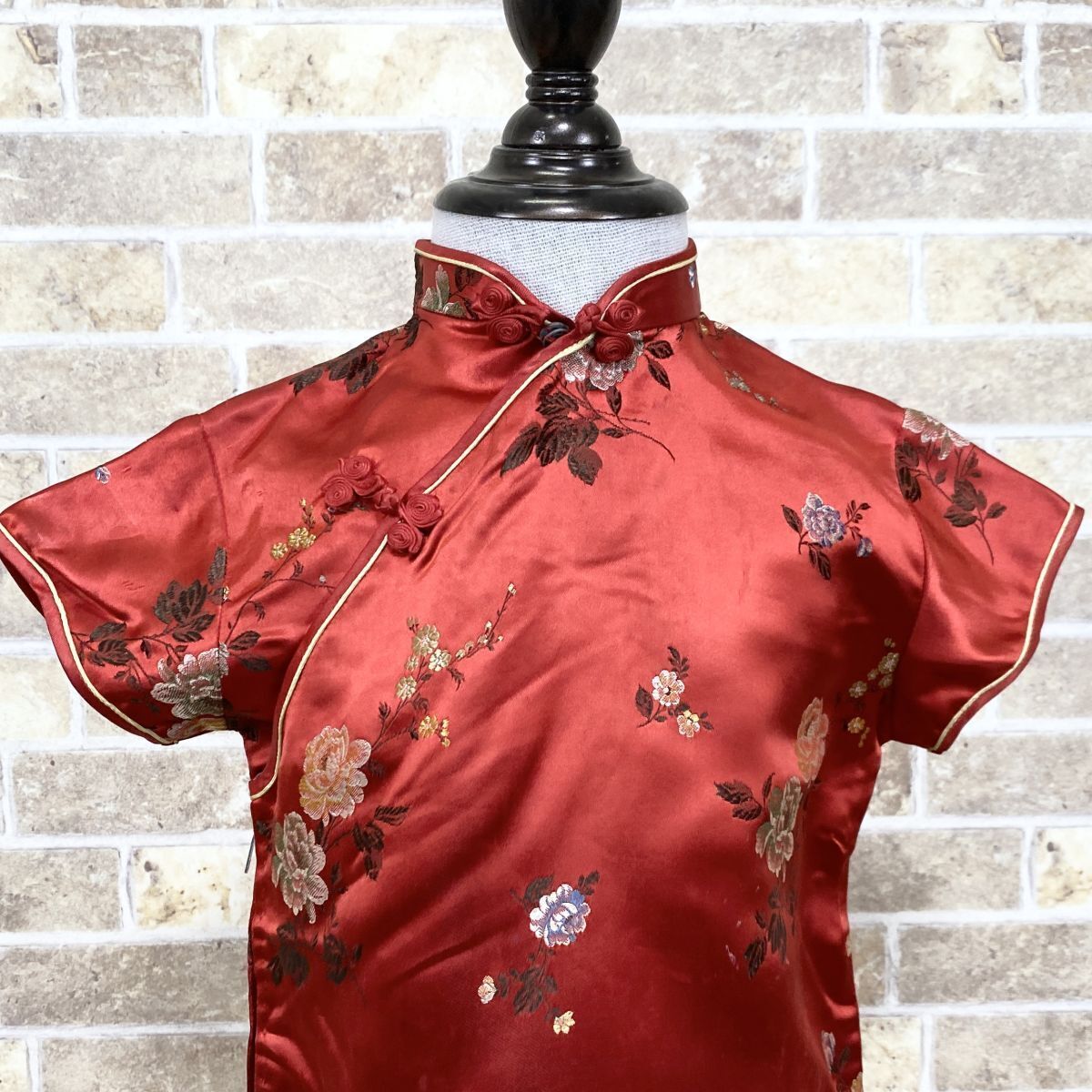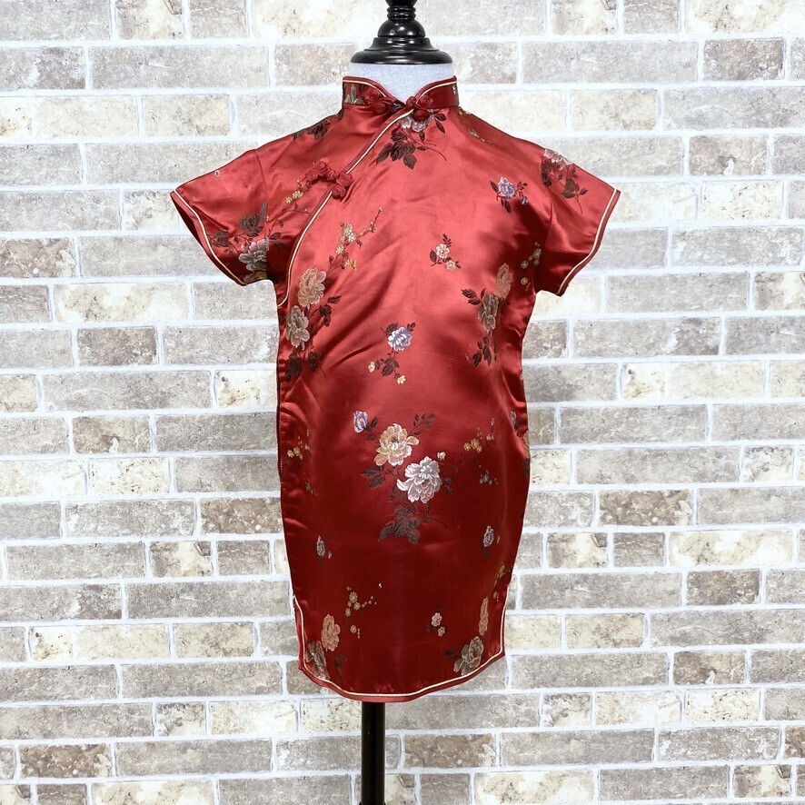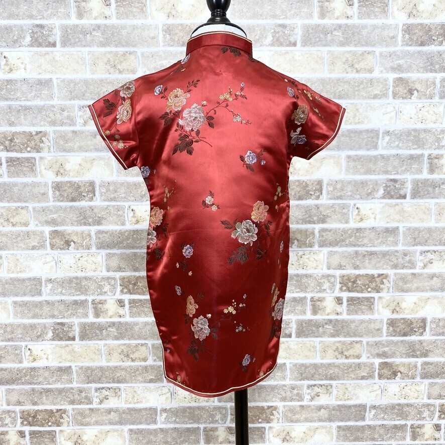 子供チャイナドレス【ネコポス可】 香港製 ワンピース 18 赤系柄 カラードレス 発表会 イベント 中古09202