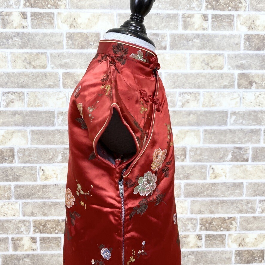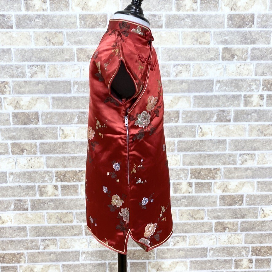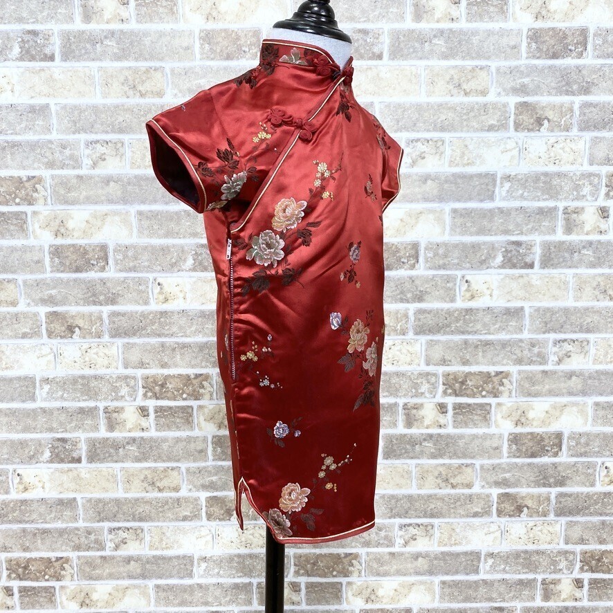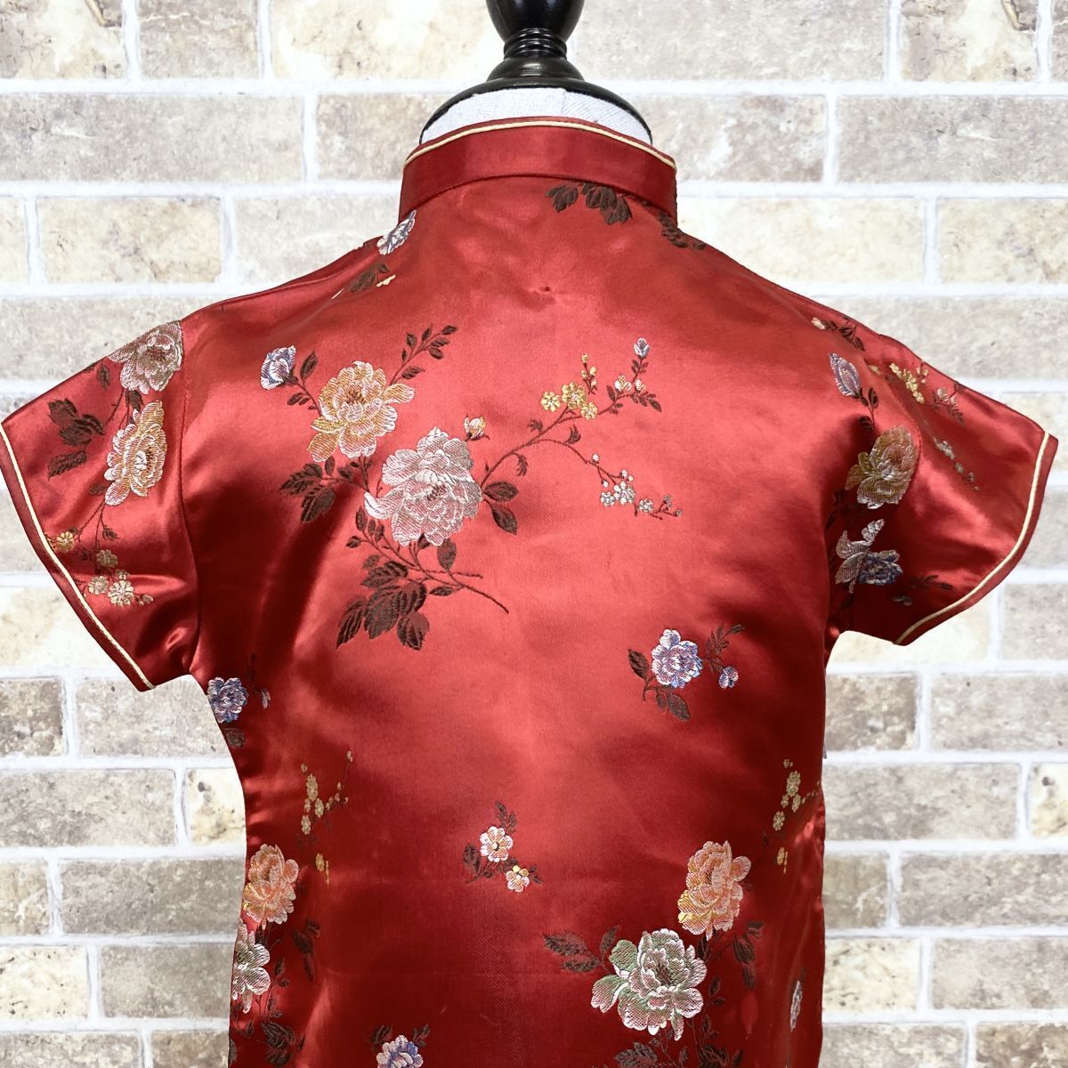 子供チャイナドレス【ネコポス可】 香港製 ワンピース 18 赤系柄 カラードレス 発表会 イベント 中古09202
