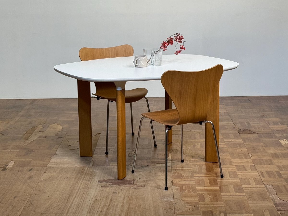 デジタルデバイス過多の現代において、テーブルの持つ本来の意味に着眼し「人と人との距離を縮め、親交を深める」ことを目的として、正方形 / 円形 / 楕円形の持ち味をひとつのテーブルデザインに落とし込み丸みのあるレッグスで合わせた、アナログ生活を叶えることをテーブルの存在意義としてコンセプトに置いた名作ダイニングテーブル。Fritz Hansen より。