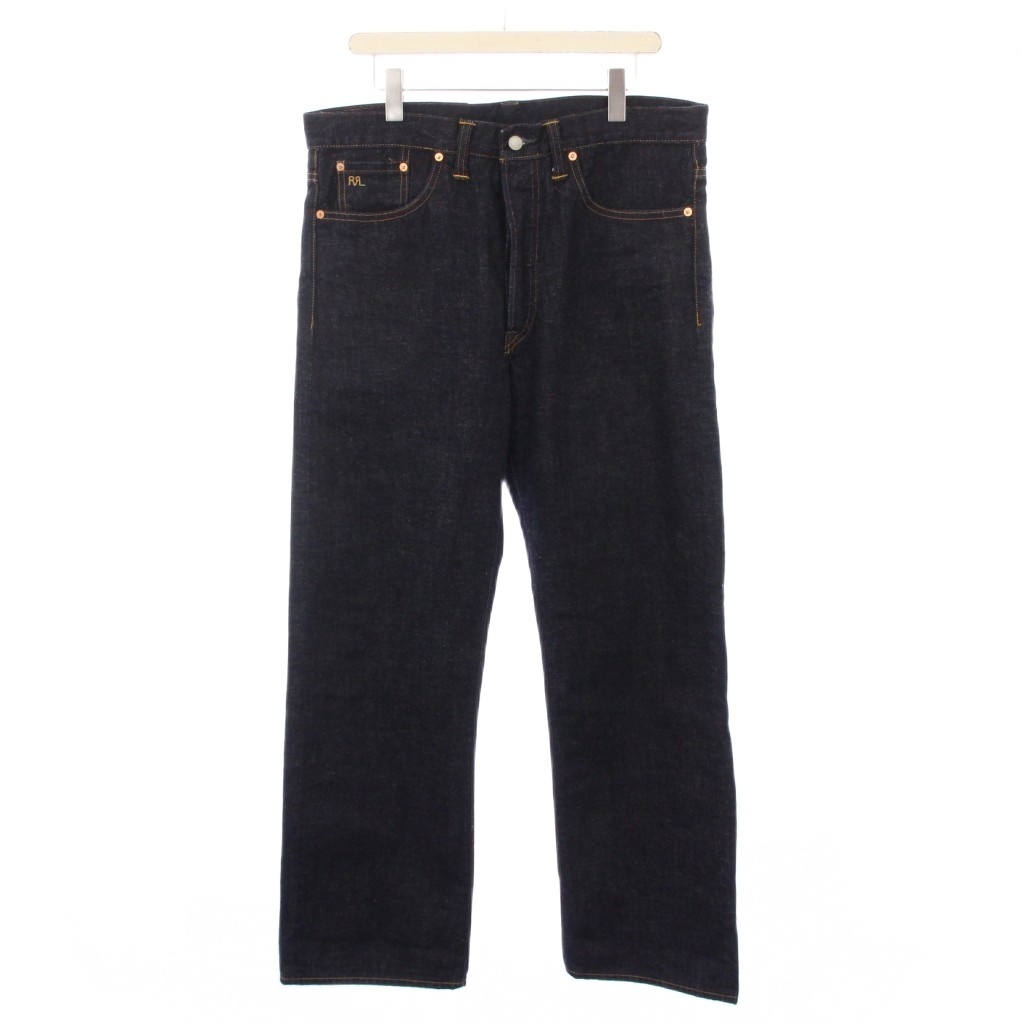 RRL ラルフローレン ジャパンウーブン5ポケット デニムパンツ ジーンズ ボタンフライ ロゴパッチ 牛革 インディゴ 782859503001