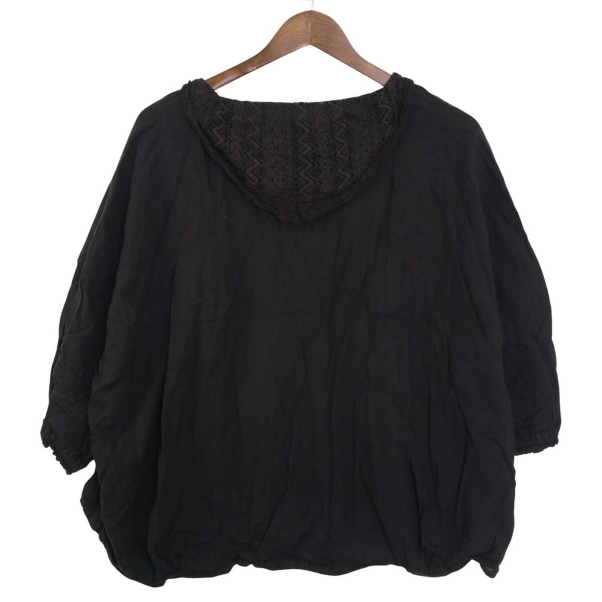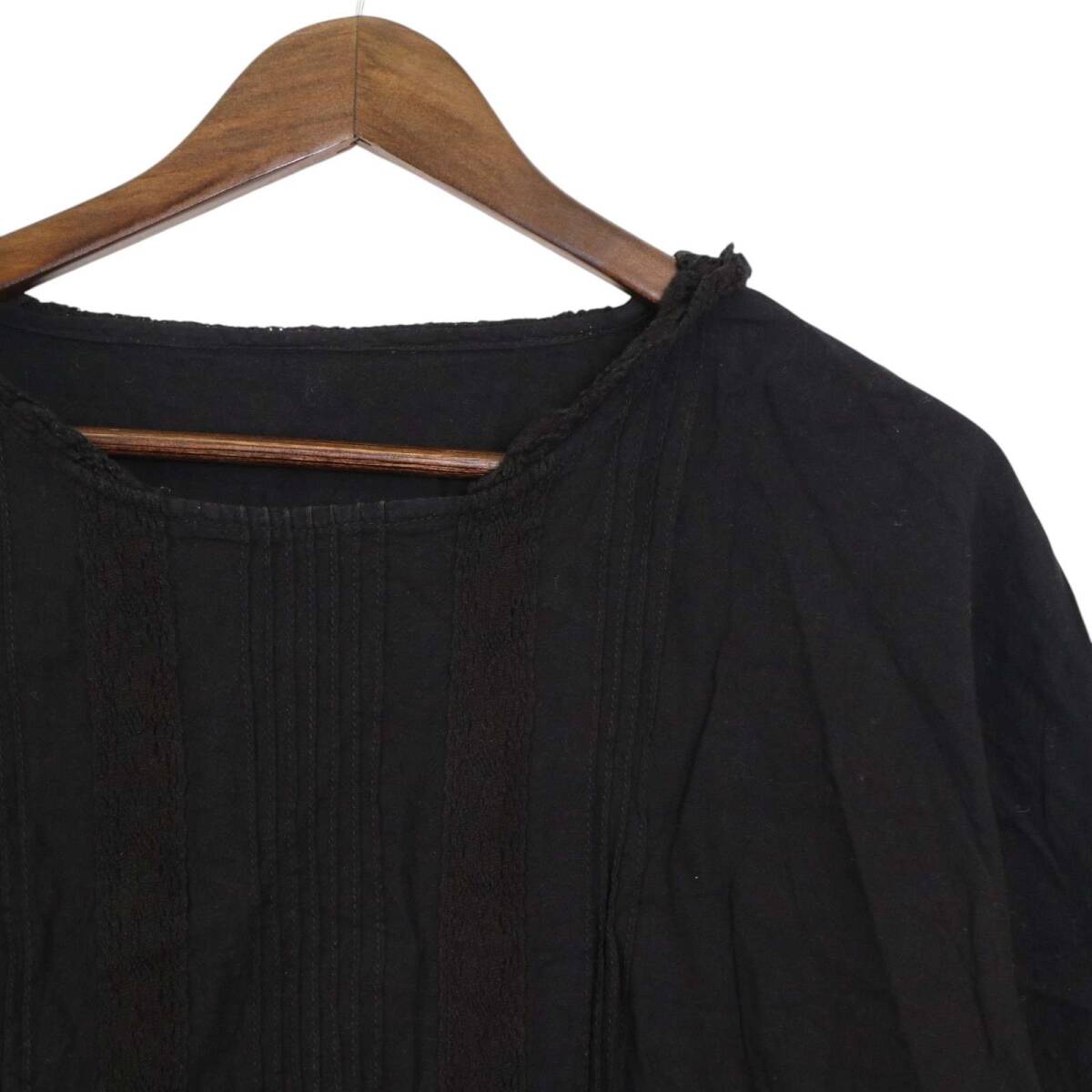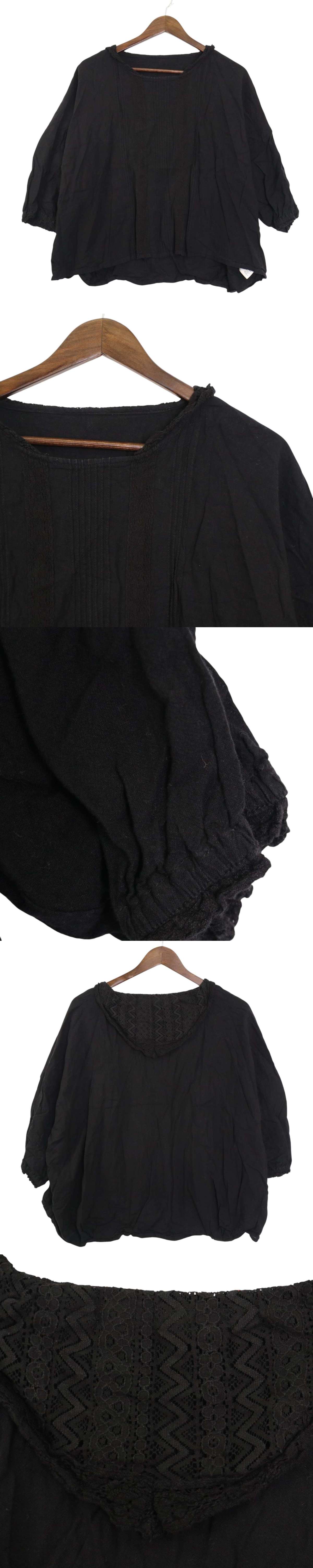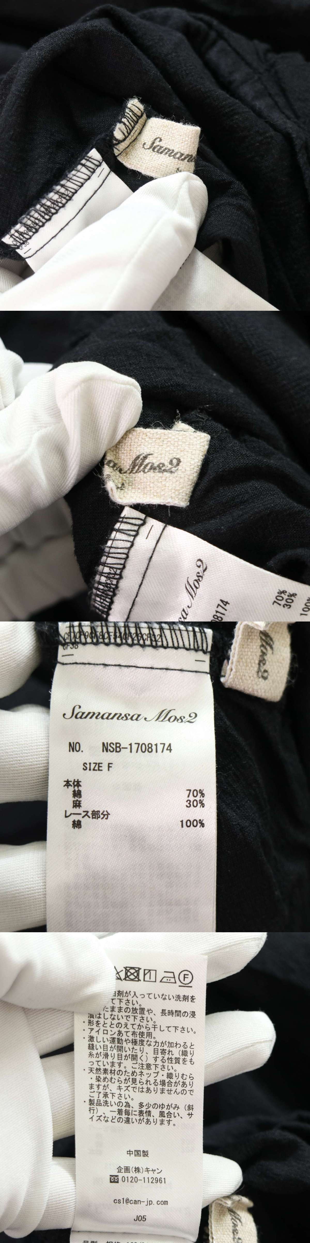 SM2 Samansa Mos2 サマンサモスモス 春夏★ 麻 裏地レース ブラウス チュニック Sz.F レディース 黒