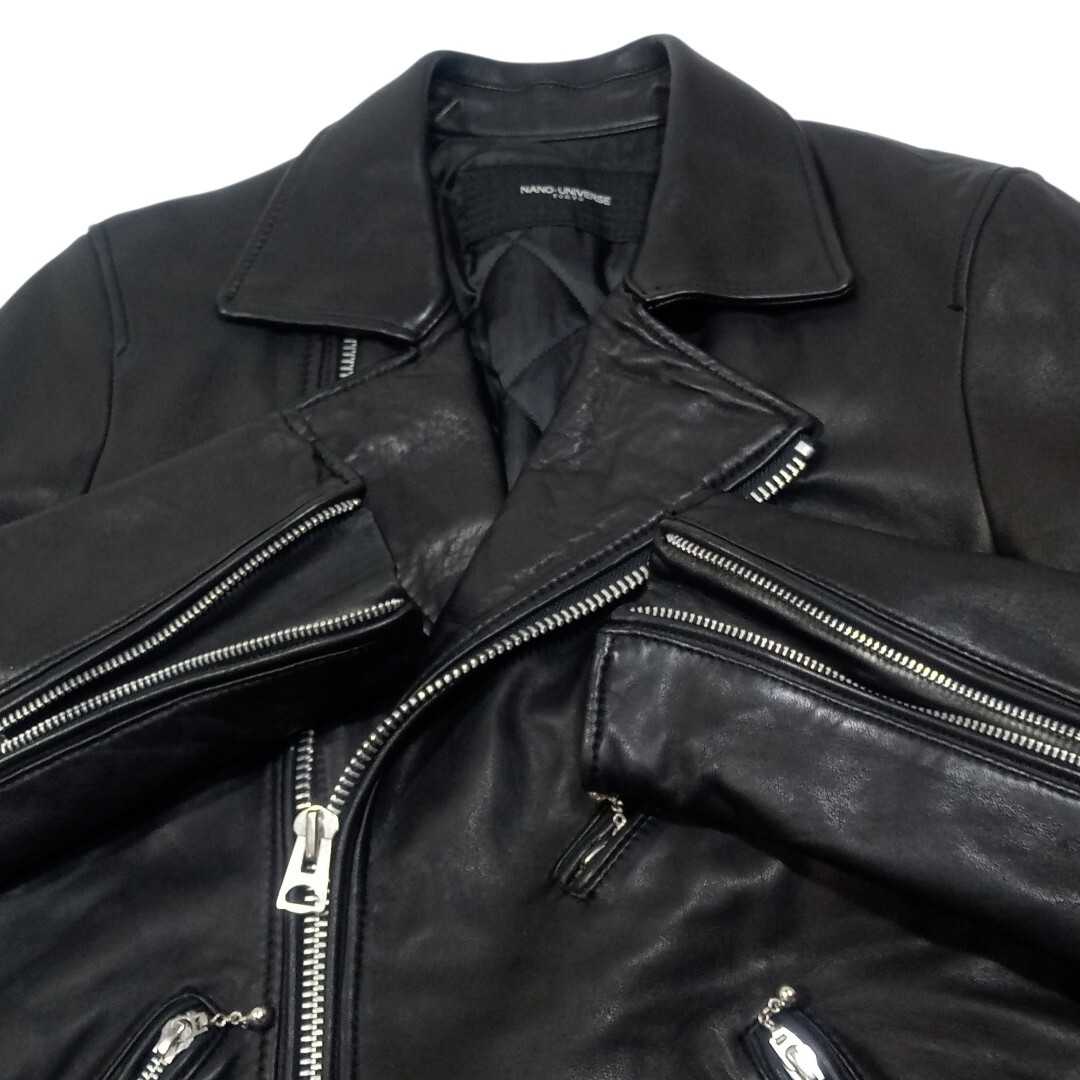 【良品 nano universe ナノユニバース ダブル ライダースジャケット S 黒 ラムレザー 羊革】