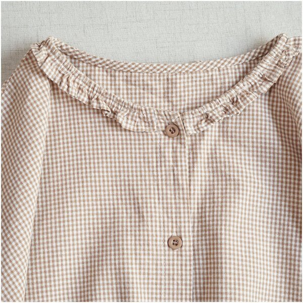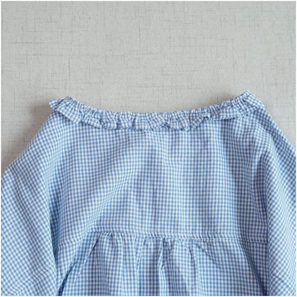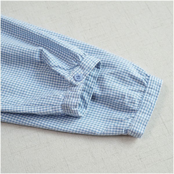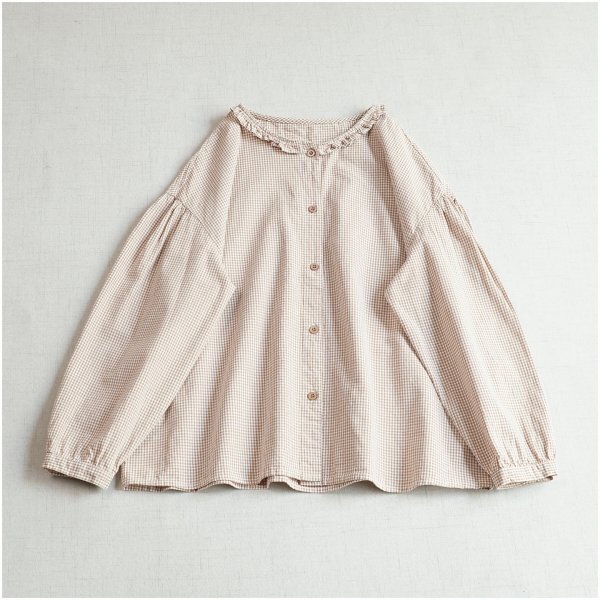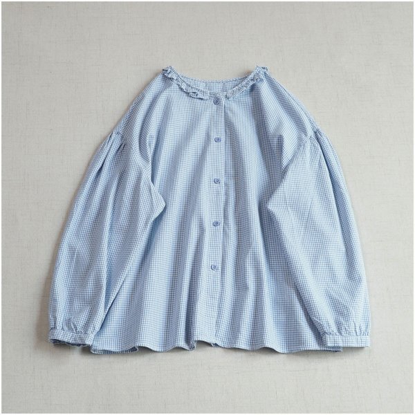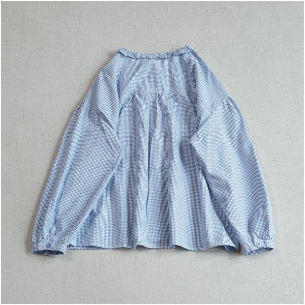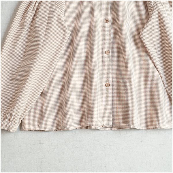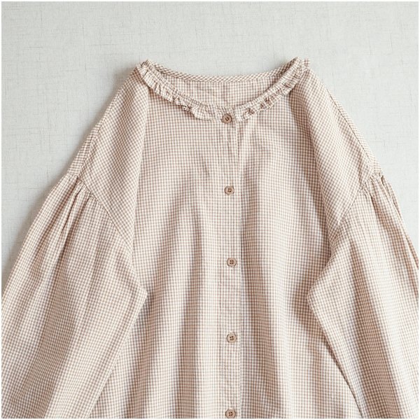 m 2509 トップス チュニック ワイシャツ 綿100% ゆったり フリーサイズ ナチュラル 前開け ギャザー襟 チェック柄2