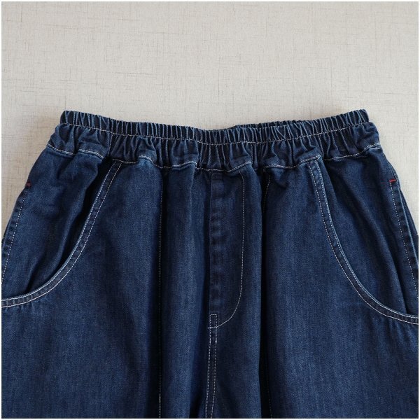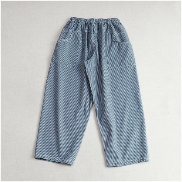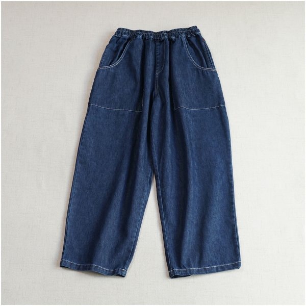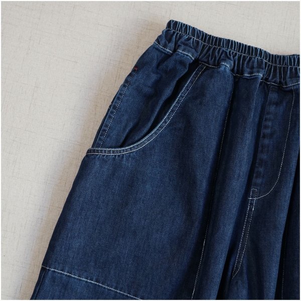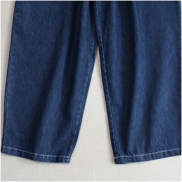 m 2509ズボン スタックス 綿100% ゆったり オシャレ フリーサイズ ナチュラル デニム生地 ネイビー
