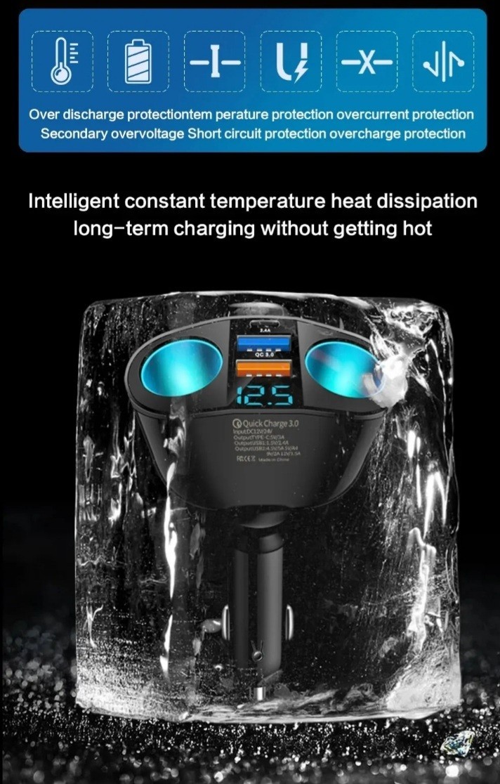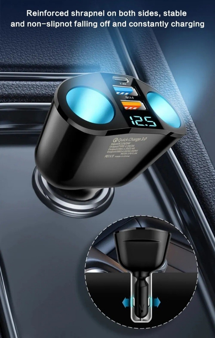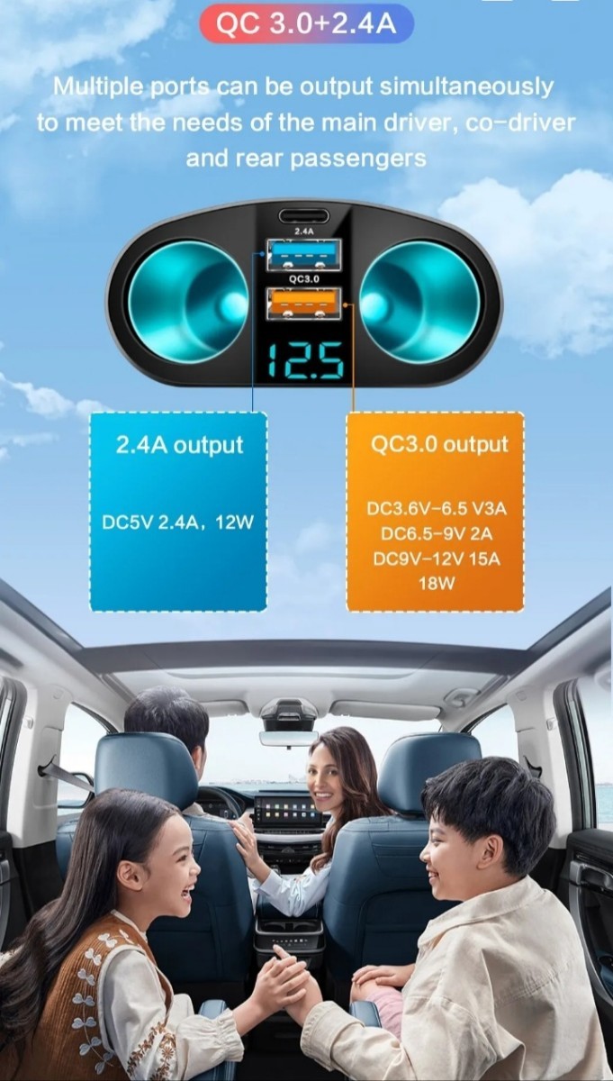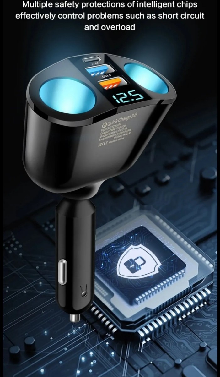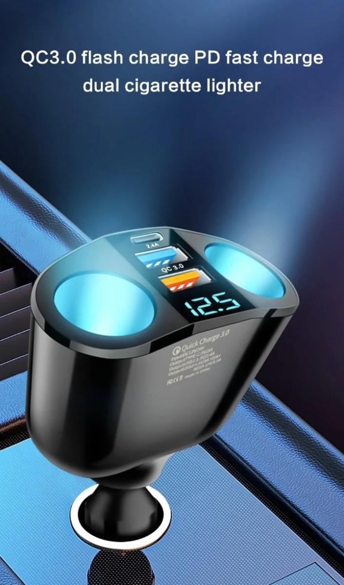 シガーソケット増設 + 2.4AとQC3.0のハイスペック急速充電器になります。