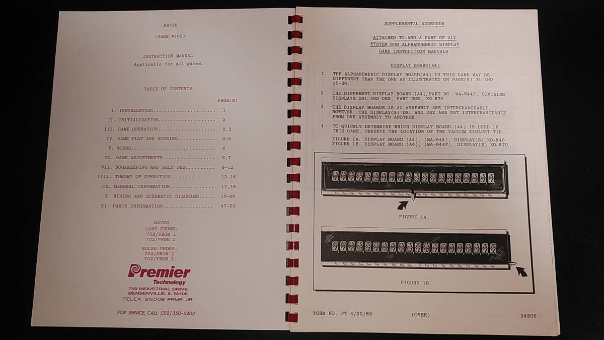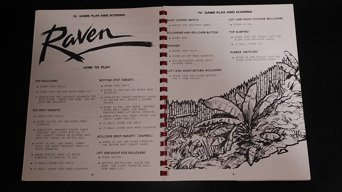 ●ゴットリーブ(Gottlieb)RAVEN INSTRUCTION MANUAL 取り扱い説明書(アーケードピンボール)