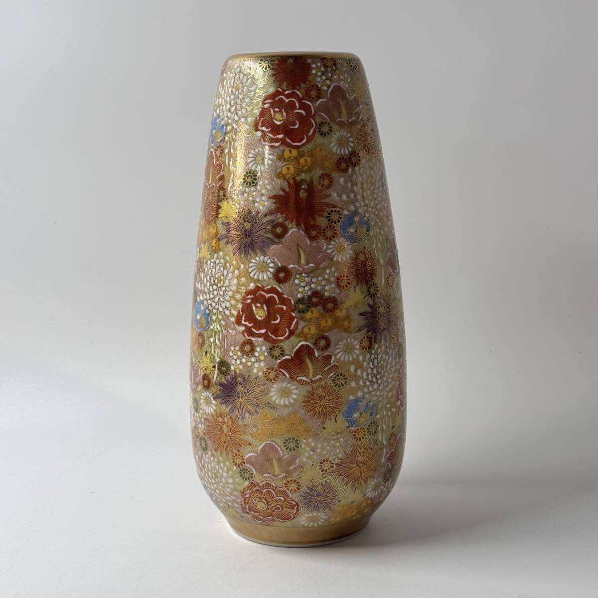 九谷焼 喜昭堂造 金彩色絵 花詰 草花文 花瓶 花器 花入 花生 華道具 茶道具 共箱 経年保管品 現状品の出品です。