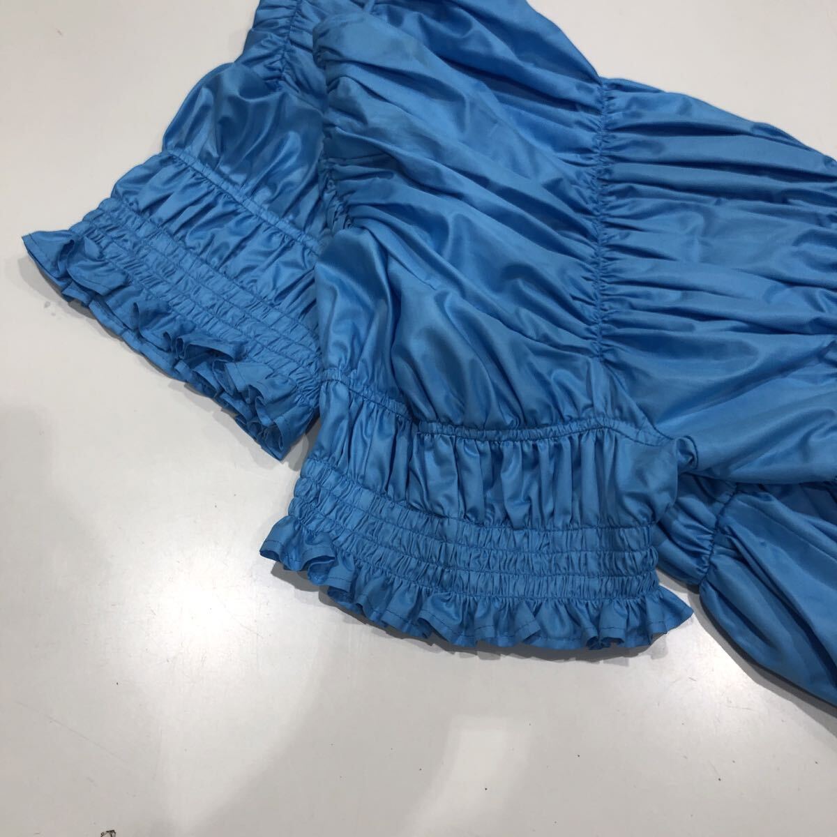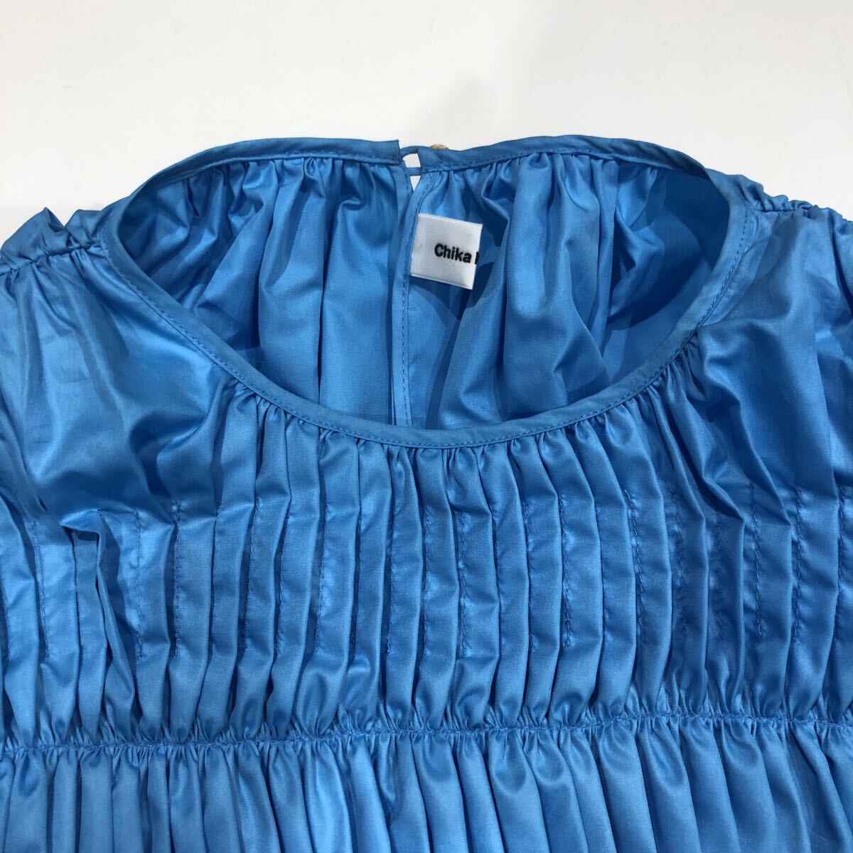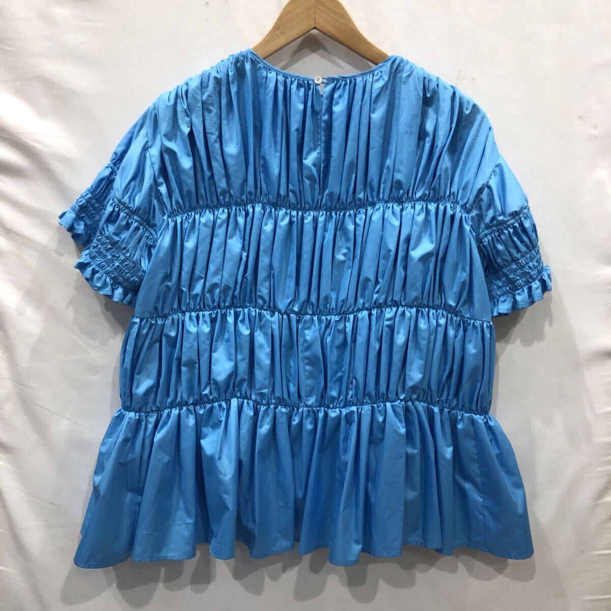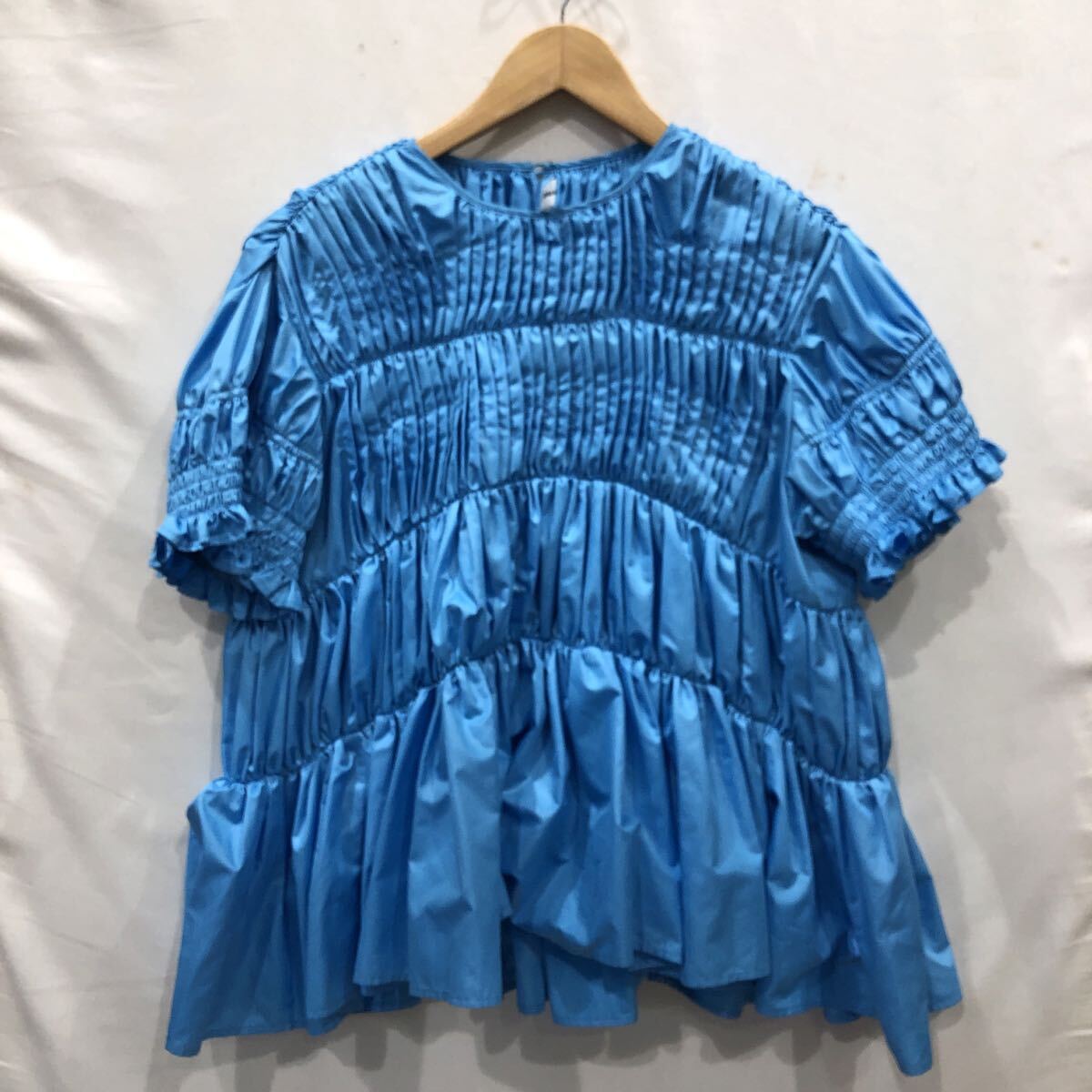 ts20250906【ChikaKisada】チカキサダ Ray Beams別注 ギャザートップス 半袖ブラウス ブルー サイズ1 nh