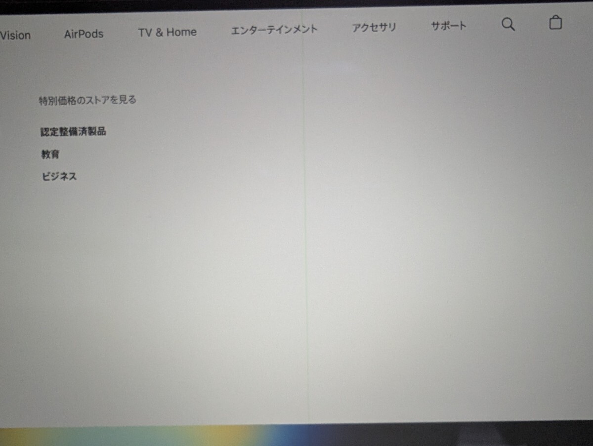 液晶画面の真ん中から少し右側に縦に薄い線が1本発生しています。あまり目立つものでは有りませんが、気になる方もおられると思いますので、ジャンク扱いとさせていただきます。