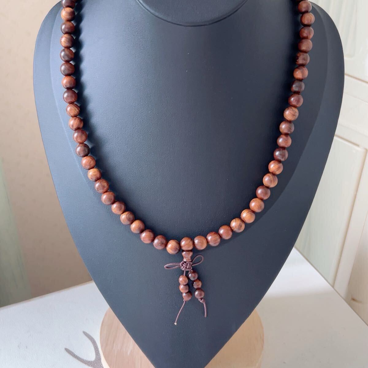 ◇アフリカ産◇花梨木◇ネックレス◇ ブレスレット◇男女兼用◇天然木◇数珠・念珠・木珠◇巾着袋付き◇プレゼントにも 032P7613