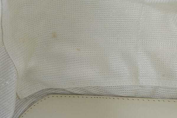 | 状態 | 外側:所々薄汚れ、ファブリック部分に茶色いヨゴレあり。持ち手に黄色いヨゴレあり。 内側:薄汚れあり。丈夫両サイドにファブリック飛び出し(たるみ)あり。 金具:小キズ、クスミあり。 |