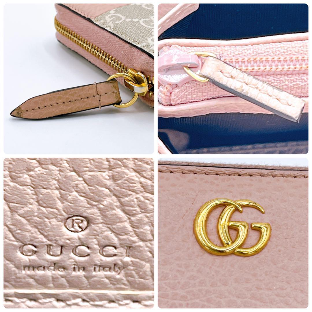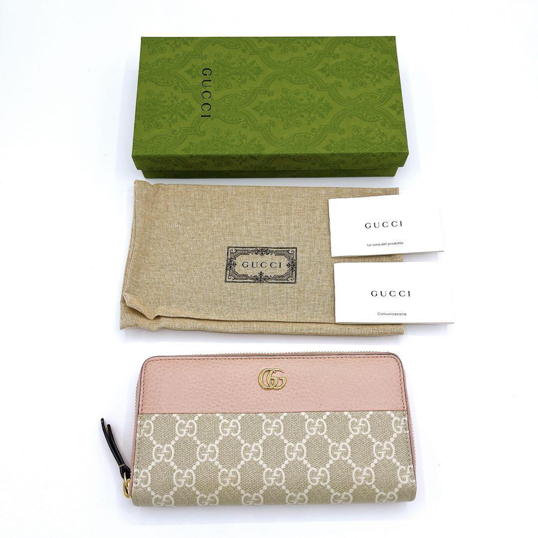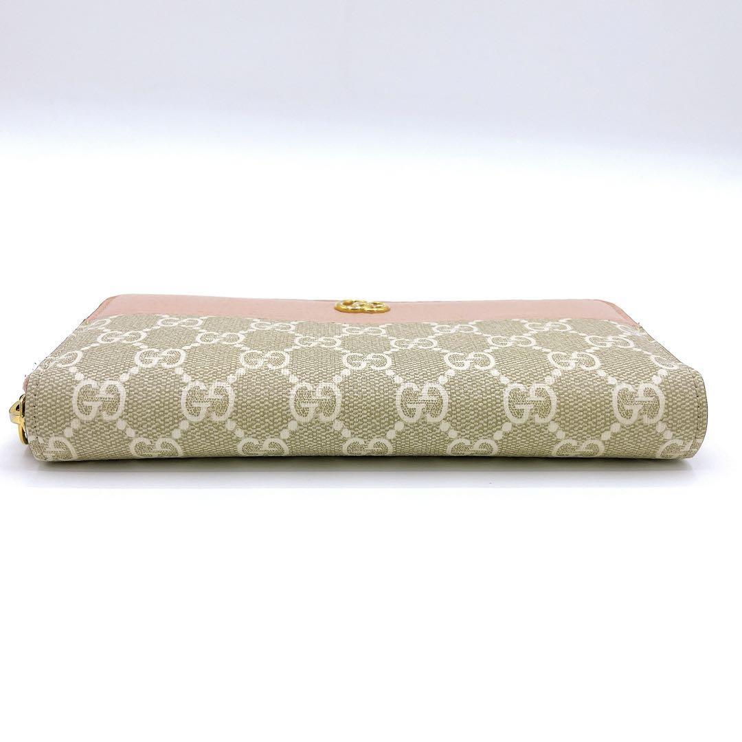GGスプリーム キャンバスとダスティ ピンクレザーを組み合わせ、グッチを象徴するダブルGの小さなハードウェアをあしらったジップアラウンドウォレット♪