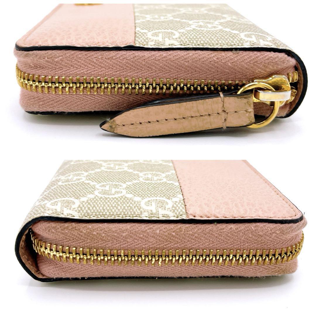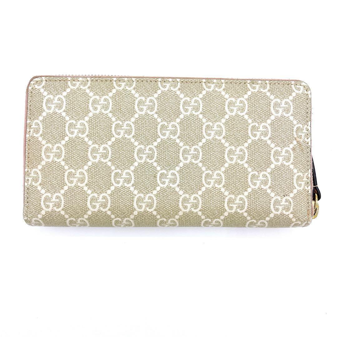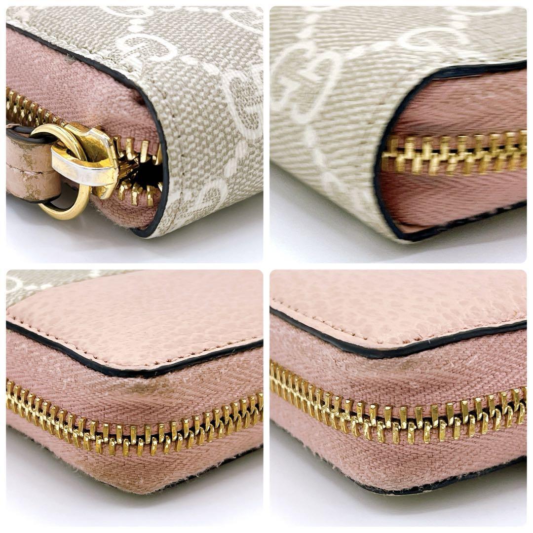 GGスプリーム キャンバスとダスティ ピンクレザーを組み合わせ、グッチを象徴するダブルGの小さなハードウェアをあしらったジップアラウンドウォレット♪