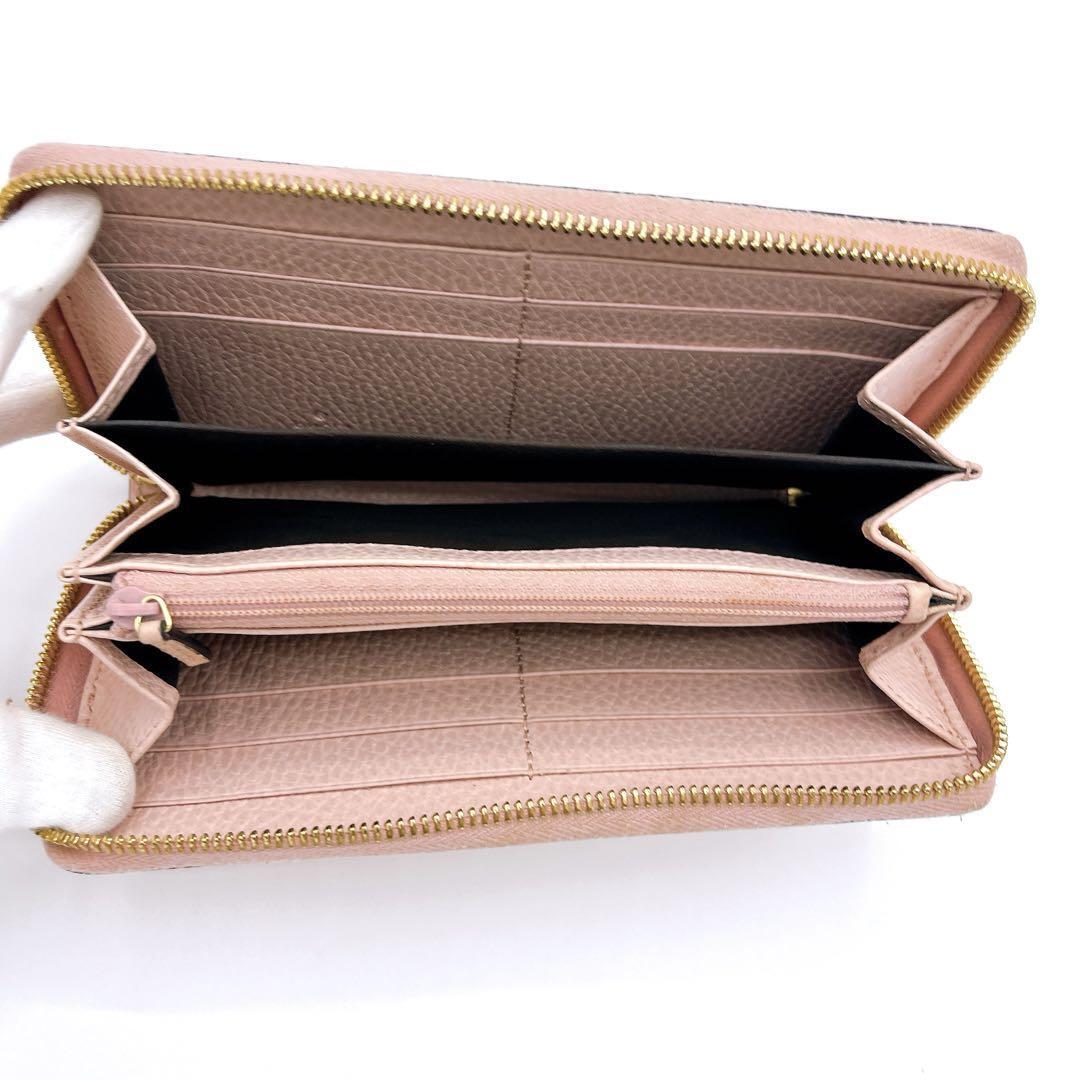 グッチ 456117 レザー GGマーモント GGスプリーム ラウンドファスナー 長財布