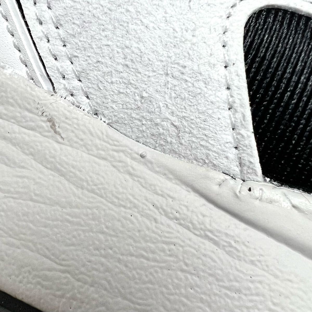 右足内側サイドに小さな接着剤跡、アッパーとの境目のソールに細かなヘコミ