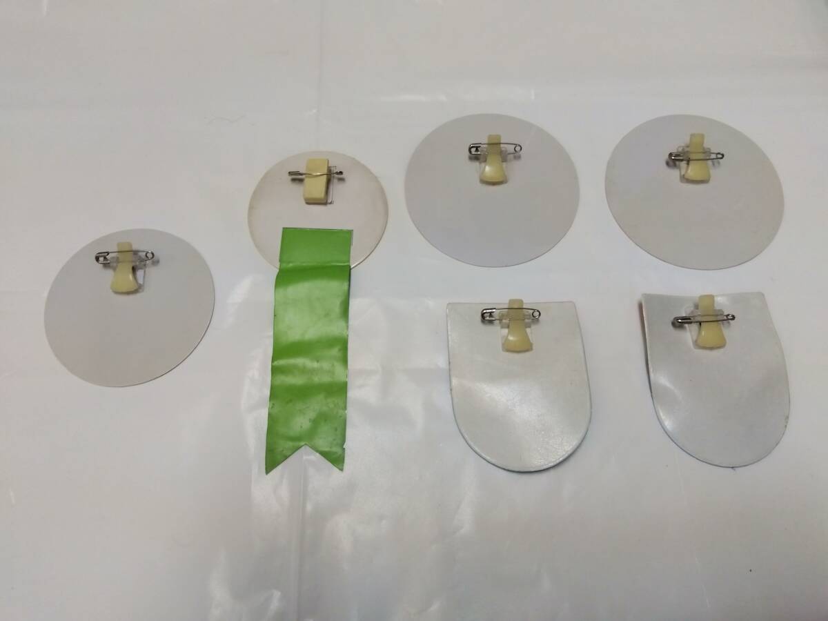 いずれも安全ピン式またはクリップ式で、当時のスタッフが制服等に装着していた実用品です。