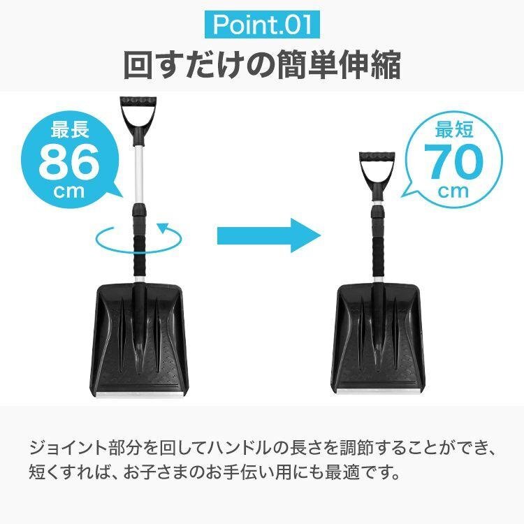 積雪を迅速かつ効率的に処理するスノースコップです。 |