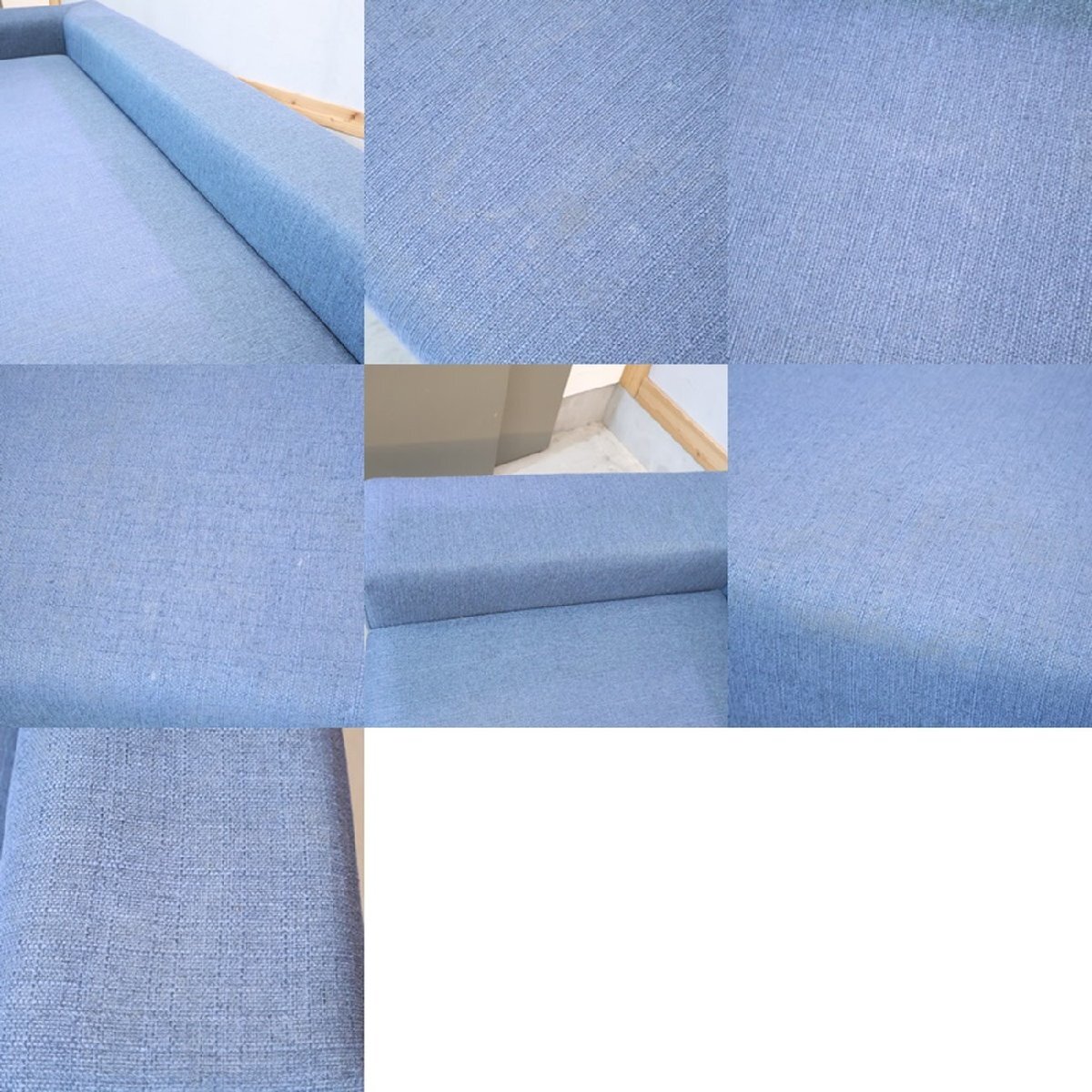遊び心のあるブルーとグレーのツートンカラーのファブリックがモダンなデザイン。