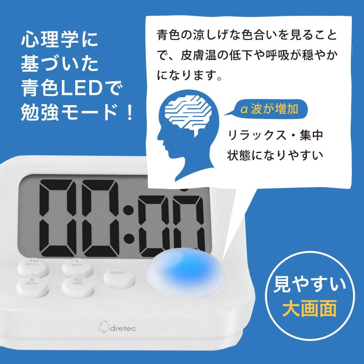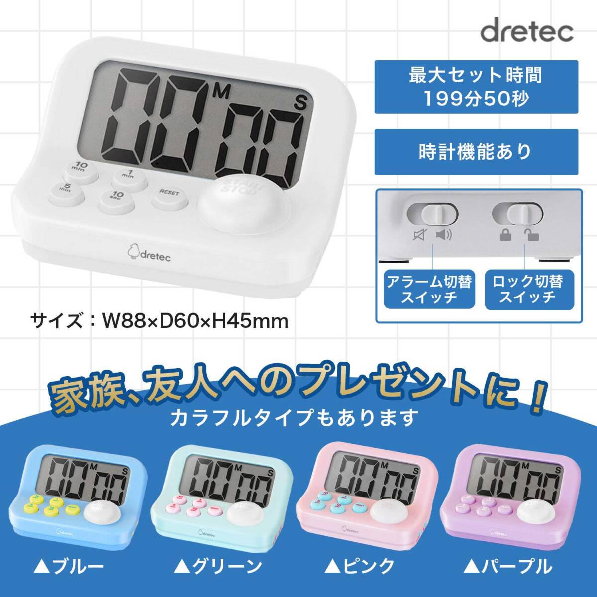 dretec(ドリテック) 学習タイマー 勉強 消音 ラーニングタイマーS 大画面 受験 資格 料理 デジタル ホワイト 約w88×d60×h4